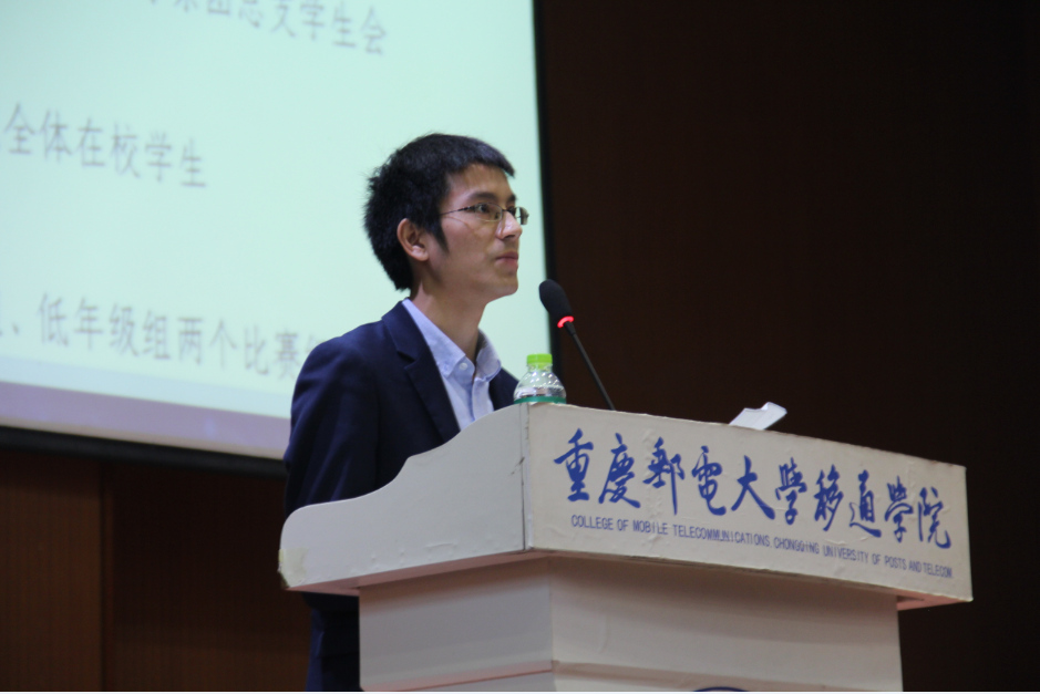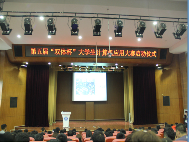 “双体杯”大学生计算机应用大赛自举办以来就致力于大学生勇于创新,学以致用,显示科技魅力。本次启动仪式由重庆邮电大学移通学院学生科技联合会与重庆邮电大学移通学院计算机科学系团总支学生会联合承办。来自不同专业的400余名同学踊跃参加使得下里巴人座无虚席。 大会伊始,视频回顾了往届“双体杯”比赛的点滴,视频中展示出往届参赛者在参与、竞争和获奖中的点滴;展示出往年组织者的辛苦与用心;展现了历届“双体杯”打造了属于自己的辉煌与移通的精彩,带动着我校软件创新氛围的空前浓烈。