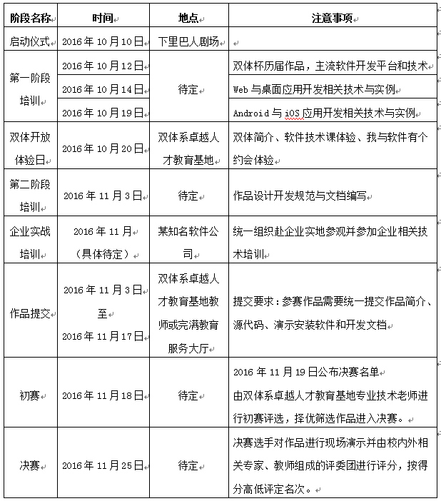 附第五届“双体杯”大学生计算机应用大赛赛事日程表