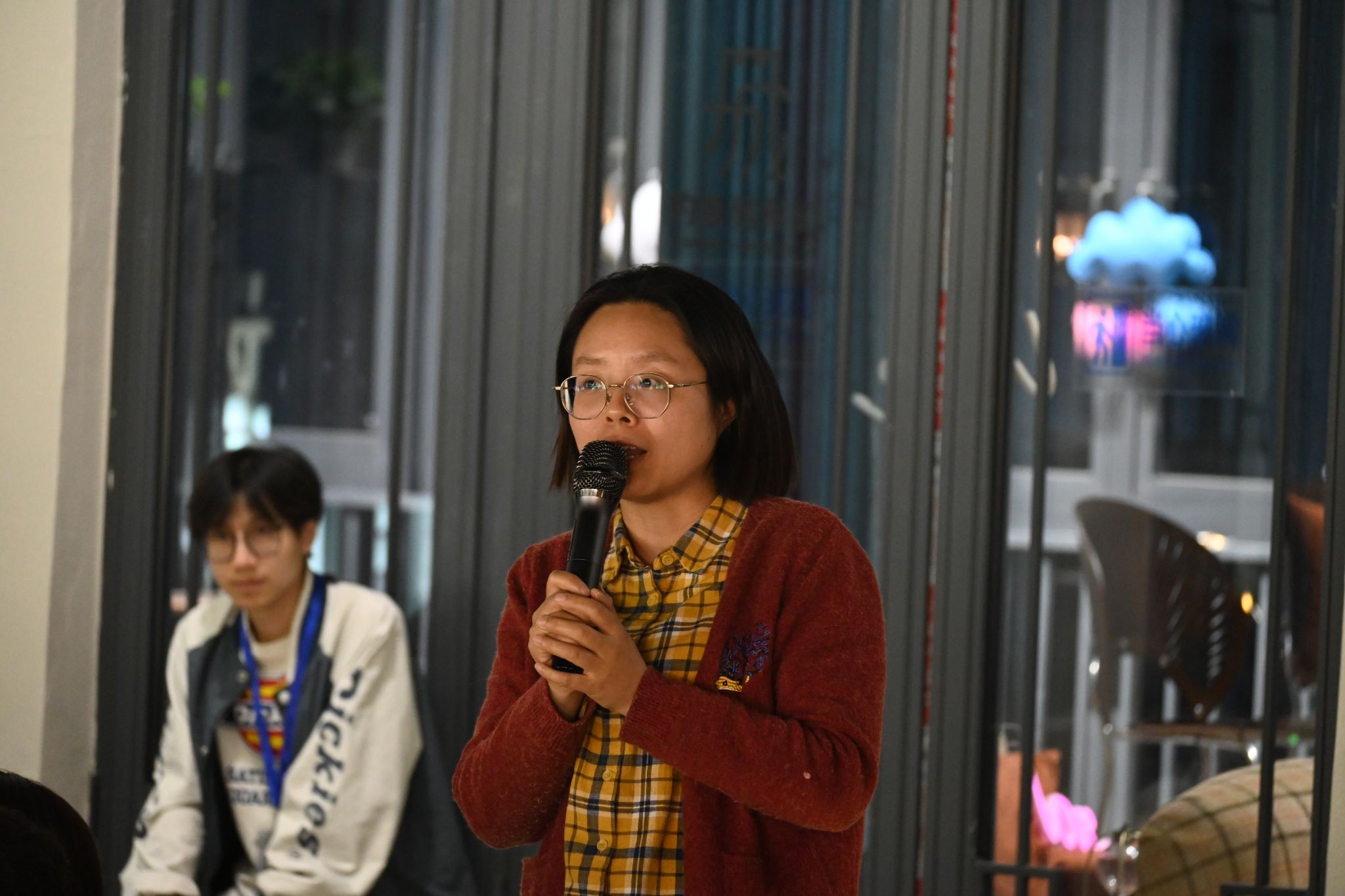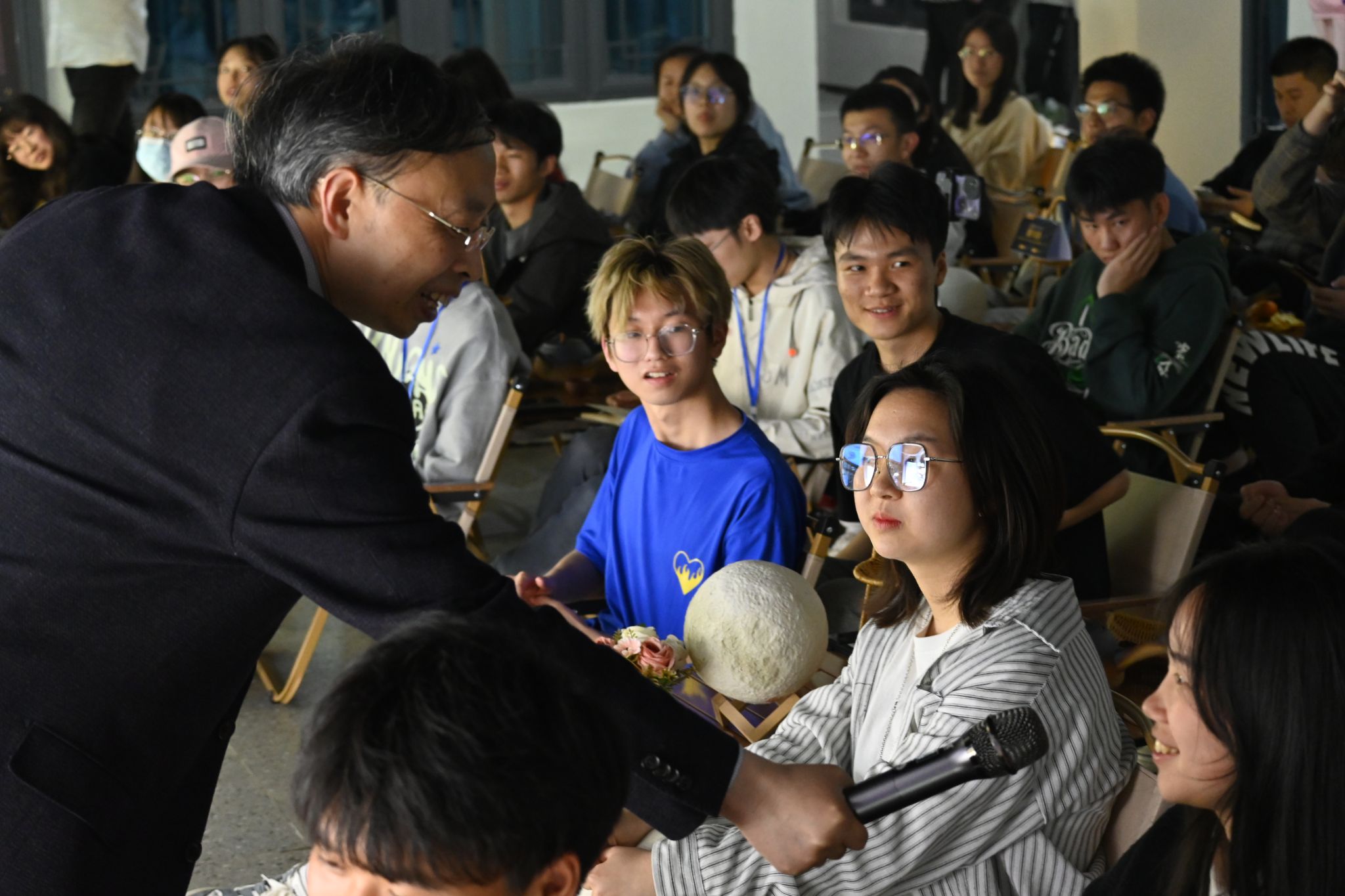天色渐晚,茶香四溢,活动悄然步入互动交流环节。廖教授结合学校办学特色,向同学们抛出了与APCOS技术相关的12组词汇“菜单”,瞬间点燃师生思维火花,现场师生们纷纷发散思绪,从不同领域、立场、角度出发,就不同问题与嘉宾展开探讨。淬炼·国际商学院的同学们对于APCOS技术如何为世界带来颠覆性改变提出疑问,“重新制定游戏规则”六字瞬间引起现场师生的思考,杨董事长以微软和因特尔公司为例说明规则制定的重要性,随后向同学们提出通过重新制定一套规则,以极高的效率,极低的成本解决世界难题,最终改变世界;现场还有学生提出如何将APCOS技术与就业创业相结合的问题,杨永东董事长则以程序员的现状为例,形象地描述了在APCOS技术背景下就业形式的变化,指出届时产业将会被打乱进而重新组建,同学们只有抓住机遇、抢占先机,才能够更好的顺应时代的发展并从中获益。随着时间流逝,书院围炉夜话渐入尾声,雨水以其强势的存在感将活动推向另一个高潮,50名师生虽临风雨而不退,纷纷以接力地形式,用不同风格的语言向大家分享自身感悟,众多对未来科技世界的期许、共勉、愿景、致敬、向往汇聚形成了完满育人的新阵地,在山城夜雨的陪伴见证下,移通师生的独特思维和观点不断交叠。