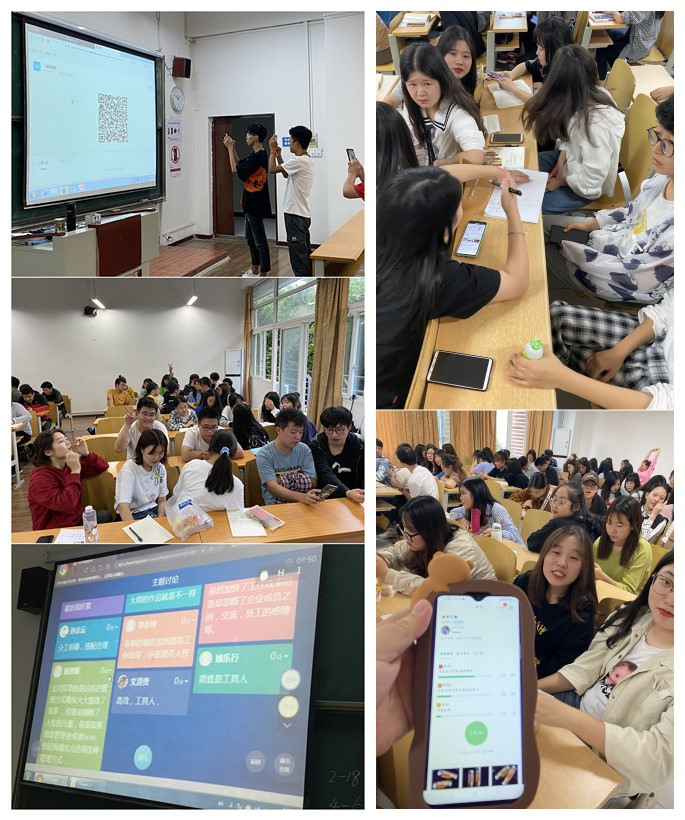 为了避免矛盾升级,通识教学部的全体教师们在部门领导皮若兰主任的带领下不断的搜寻通识教育的真正意义,反思教学过程中的方式及方法,寻找一种能将信息时代与学生有效的融合新教学环境。逐步推进“以学为中心”的教学改革,规范教学大纲完善课程体系及修改教学方法,并落实阅读、查找、讨论、实践、协同、创新等教学环节融入已有的教学内容,逐步建立科学的考核方法和教学评价制度。并将手机作为学习工具带入课堂,以一种新信息技术融入通识课堂开展教学,再结合学习通、雨课堂等APP软件,让学生一进教室就知道拿出手机扫二维码签到,可以通过手机APP在投影幕布上发表自己的观点参与课堂讨论,还能与同学在讨论时遇见不同的意见通过手机投票的形式统一小组的观点,让手机从以前上课的玩具变成学习的工具。