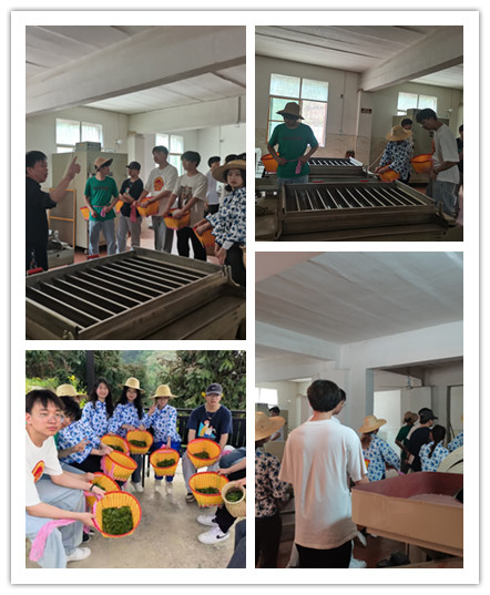 采摘结束后,师生们进入制茶间,观摩制茶。周祥彬书记为大家介绍了制茶的流程,制茶师傅为茶叶杀青、揉捻、烘干,大家了解到很多之前所不知晓的制茶知识。随后,曾太纯副书记煮了茶场今年的新茶请大家品尝。采茶-制茶-品茶,是今天劳动教育的主题。活动结束后,大家都意犹未尽,希望下次能再来体验。