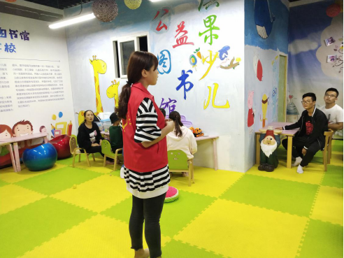 第二个“约会”地点选定在了缤果城少儿公益图书馆。一路上,随行的青协负责人都在给同学们讲述这个合川唯一的一家少儿公益图书馆的“前世今生”。同学们感动于学校志愿者们本着“扎根合川、融入合川、服务合川”的志愿服务理念,致力于在合川城区、乡镇开展各类志愿者服务活动的志愿服务精神,也惊异于少儿公益图书馆里温馨而有爱的氛围。如果说市民学校的服务理念和组织方式给大家留下了极为深刻的印象,那么少儿公益图书馆的志愿服务精神和多年以来的坚持就是给在场所有同学留下的思考题。