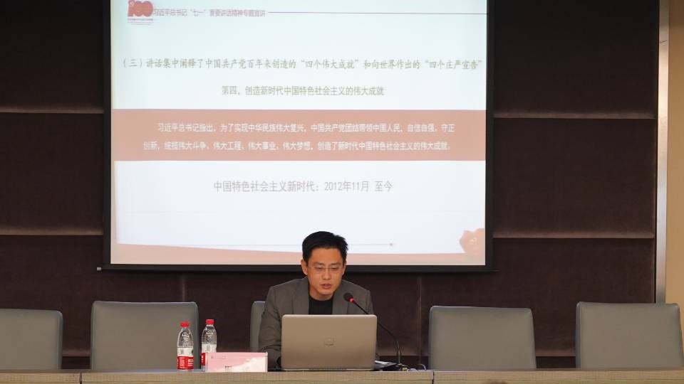 为深入学习贯彻习近平总书记“七一”重要讲话精神,推动党史学习教育走深走实,10月29日上午,我校于行政楼601会议室举行专题报告会,校党委副书记、副校长周伟作学习贯彻习近平总书记“七一”重要讲话精神专题宣讲,学校相关职能部门、各二级学院师生代表参加此次报告会。