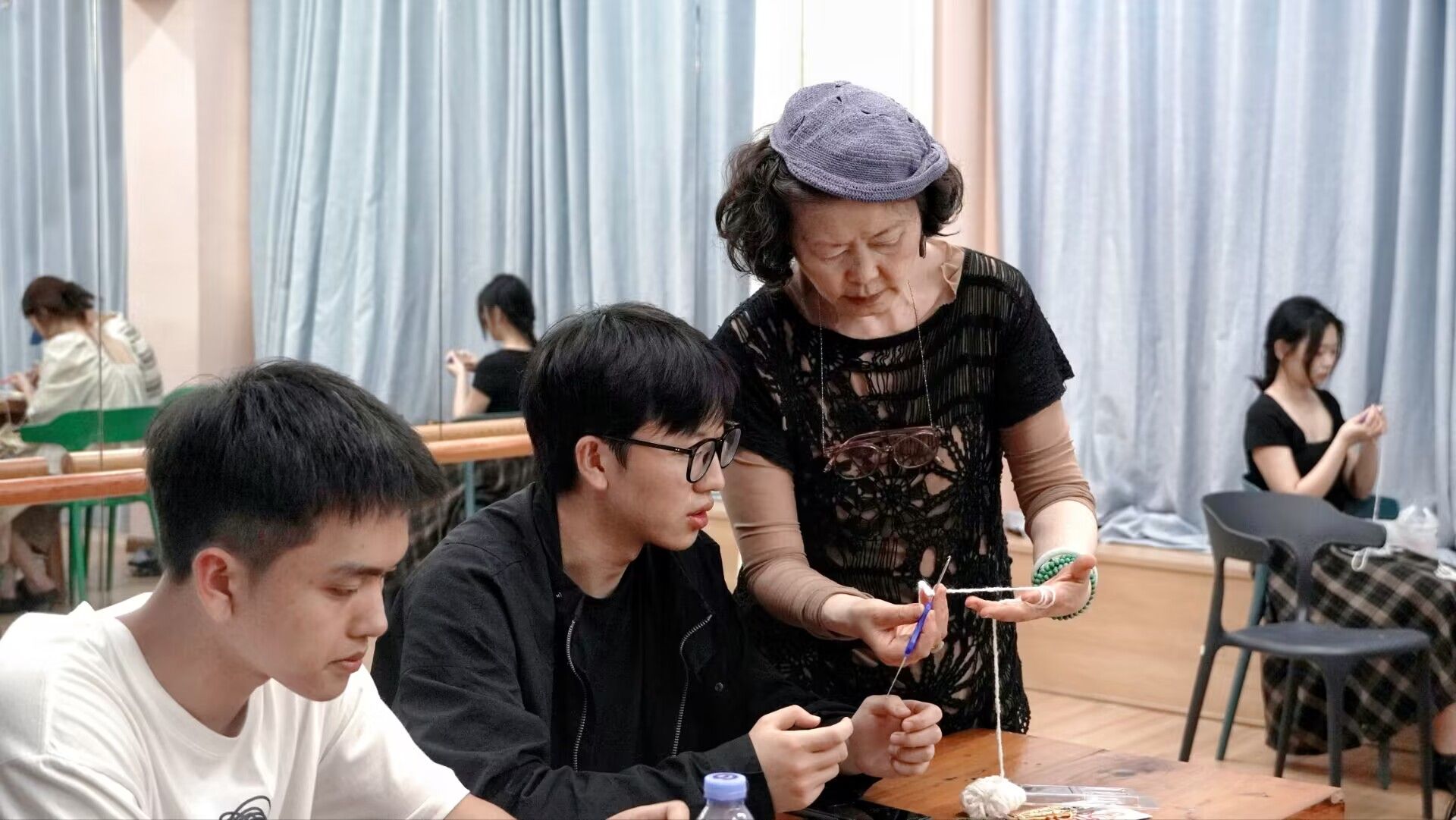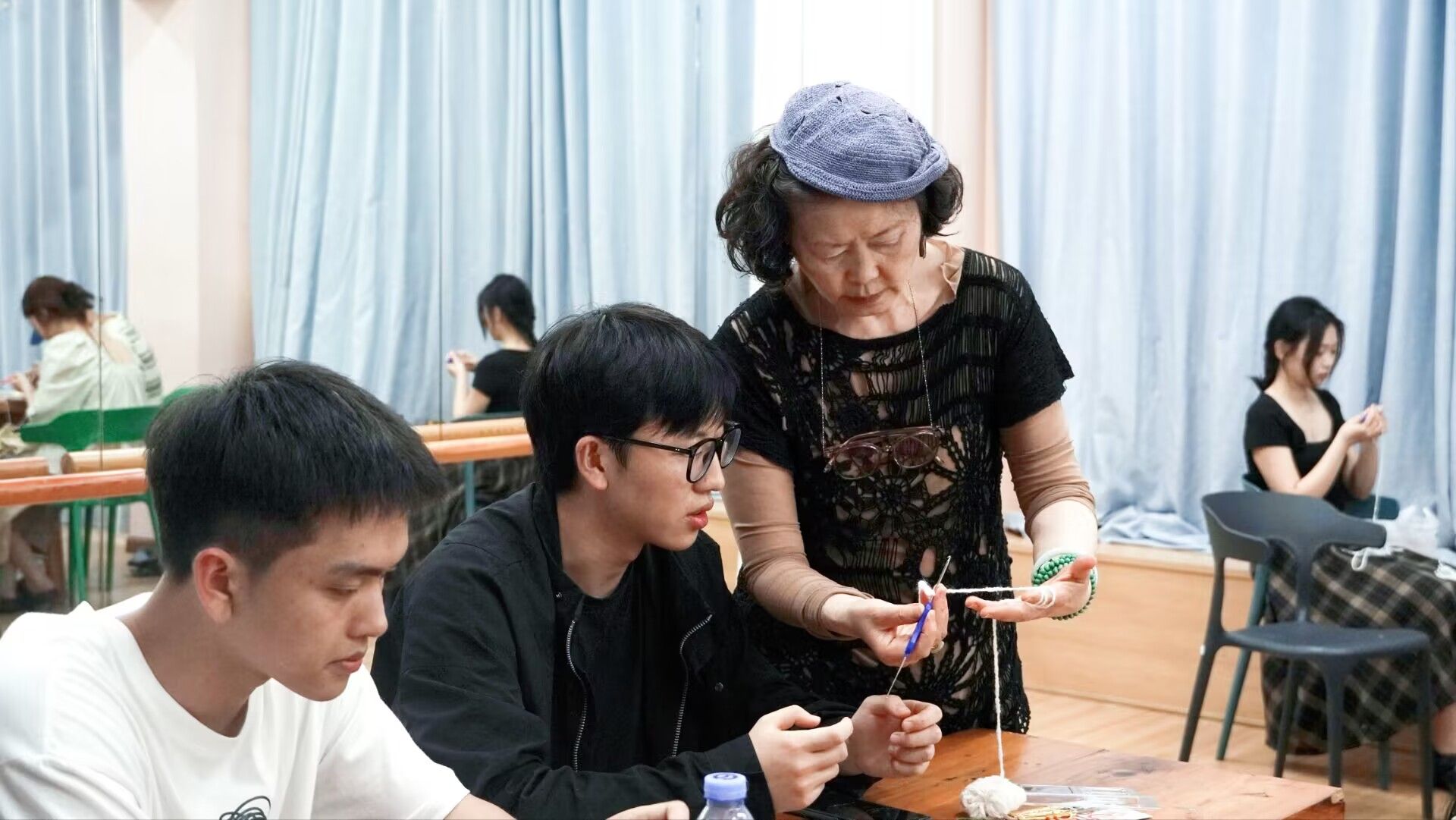 也许编织已是老一辈的情怀。当今许多编织款式的艺术品也不断在创新,但不变的是像老师们这样的手艺人对传统的坚持与传承。今天刘一华老师带着学生们一起编织毛线,刘老师熟练地在台上示范,耐心地一步一步讲解,希望每一个同学都能掌握。老师与同学亲切交流的场景让每一个同学都收获匪浅。纤细的钩针在同学们的手中蕴藏着巨大的能量,每一件“手工”织物都流淌着温暖,诉说着对生活的热爱。