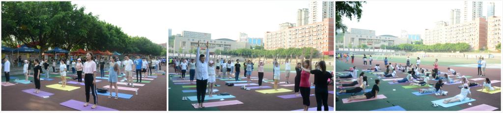 活动当天,100多名瑜伽爱好者在运动场上共同展示瑜伽技巧。他们在表演过程中认真表演了学到的各种瑜伽健身动作——吸气、手臂上举、仰望天空,吐气、俯身向下、亲近大地;吸气、抬头凝视、伸展脊背,吐气、向后跳跃、俯身大地……大家用曼妙的瑜伽体位法锻炼着身躯,回归初生的柔韧,体现了移通学子追求“健康、时尚、活力”的校园生活理念。