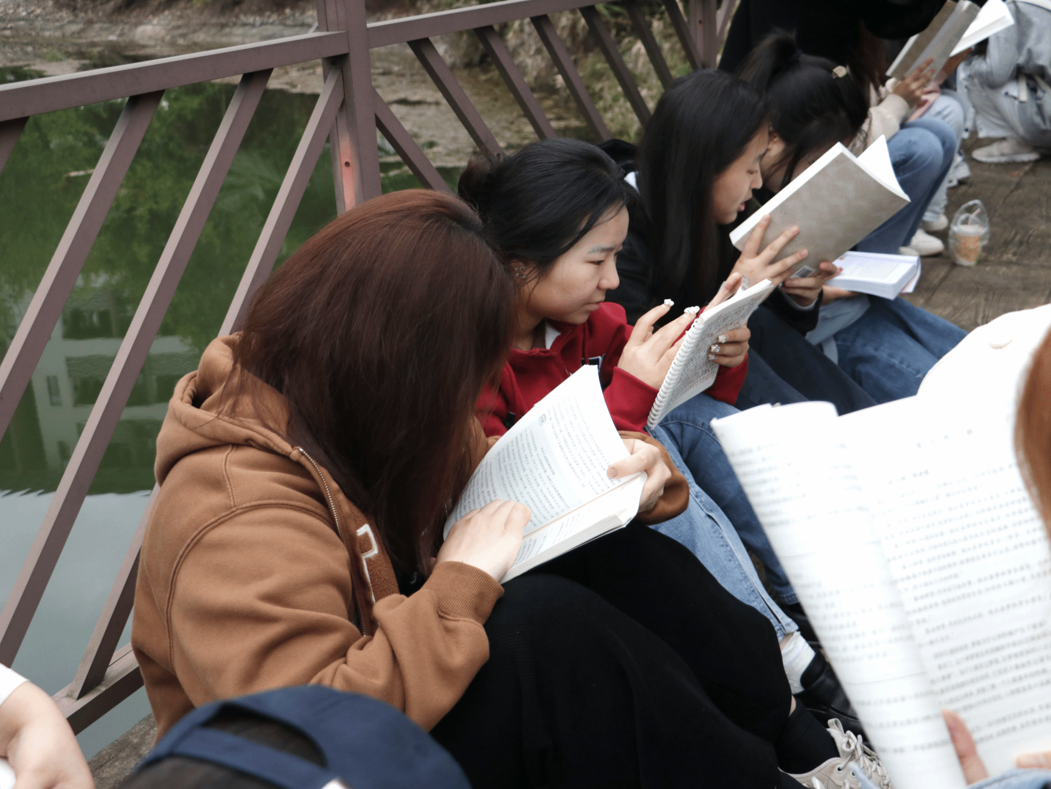 脚步丈量不到的地方,文字可以;无法经历的人生,书籍带你相遇。早起晨读,看东方既白、远景如黛,感受晨光渐渐透亮,享受属于自己的悦读时光。结合“4·23世界读书日”特殊节点,以朋辈影响力和兴趣影响力为重要育人抓手,南湖书院携手图书馆、外国语学院,于4月7日至27日期间开展南湖晨读班·双子湖畔好读书第二季。根据21天习惯养成定律,活动吸引到300位参与同学于每日7:00在双子湖畔开始晨读,激活阅读兴趣,养成惜时早起读书好习惯。