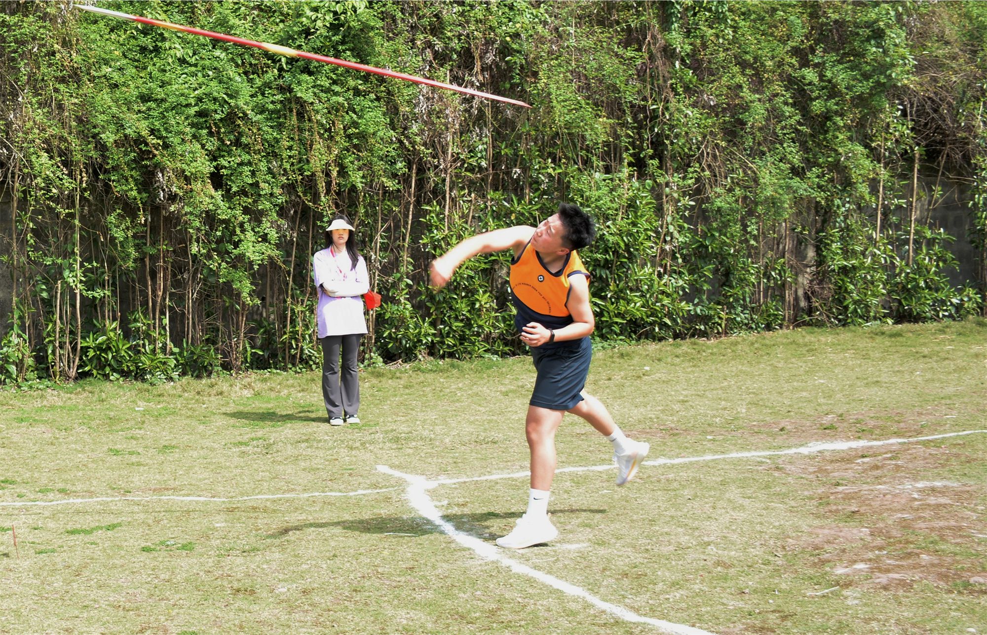 与跳高跳远比赛相比,距离较远的标枪比赛也让人们大开眼界,流连忘返。在赛场上,一道道优美的弧线将轻盈地划过天空,智工健儿们用手中的标枪向距离的极限发起一轮又一轮的挑战。标枪在空中轻盈的姿态,是健儿们强健的力量与熟练的技巧相结合的体现,夺得桂冠者必是力量与技巧的完美结合者。我院李前锟与刘银分别取得标枪比赛男子组第三名与第五名的优异成绩。