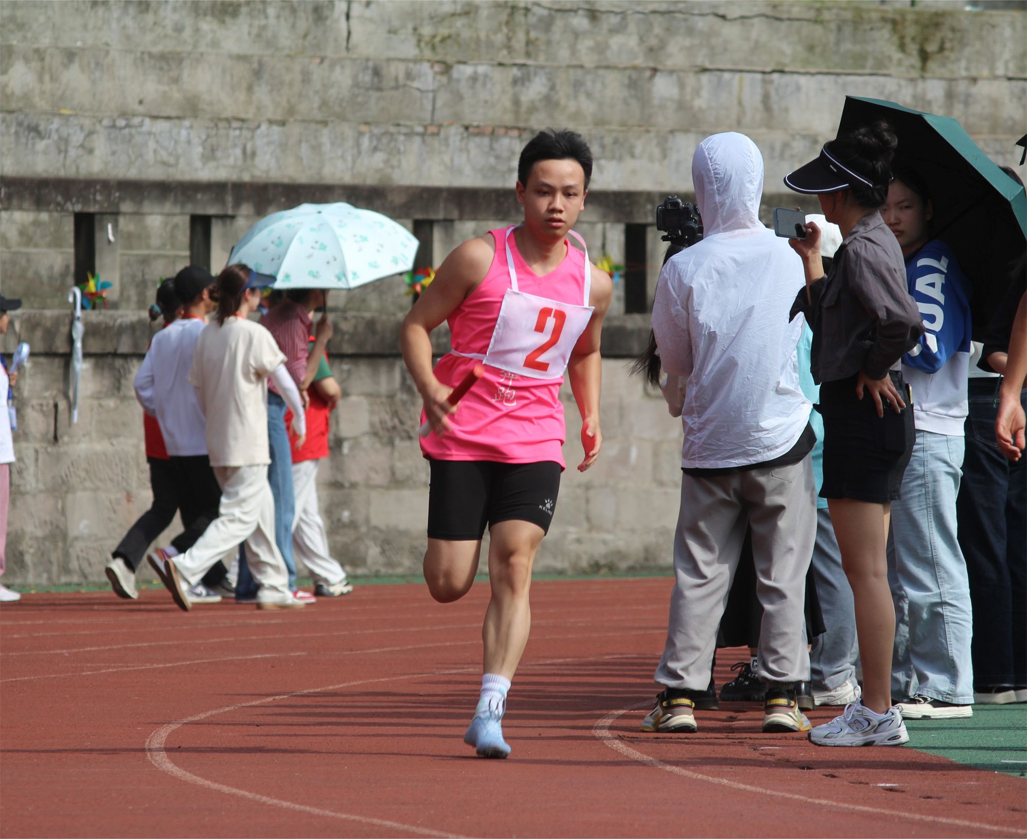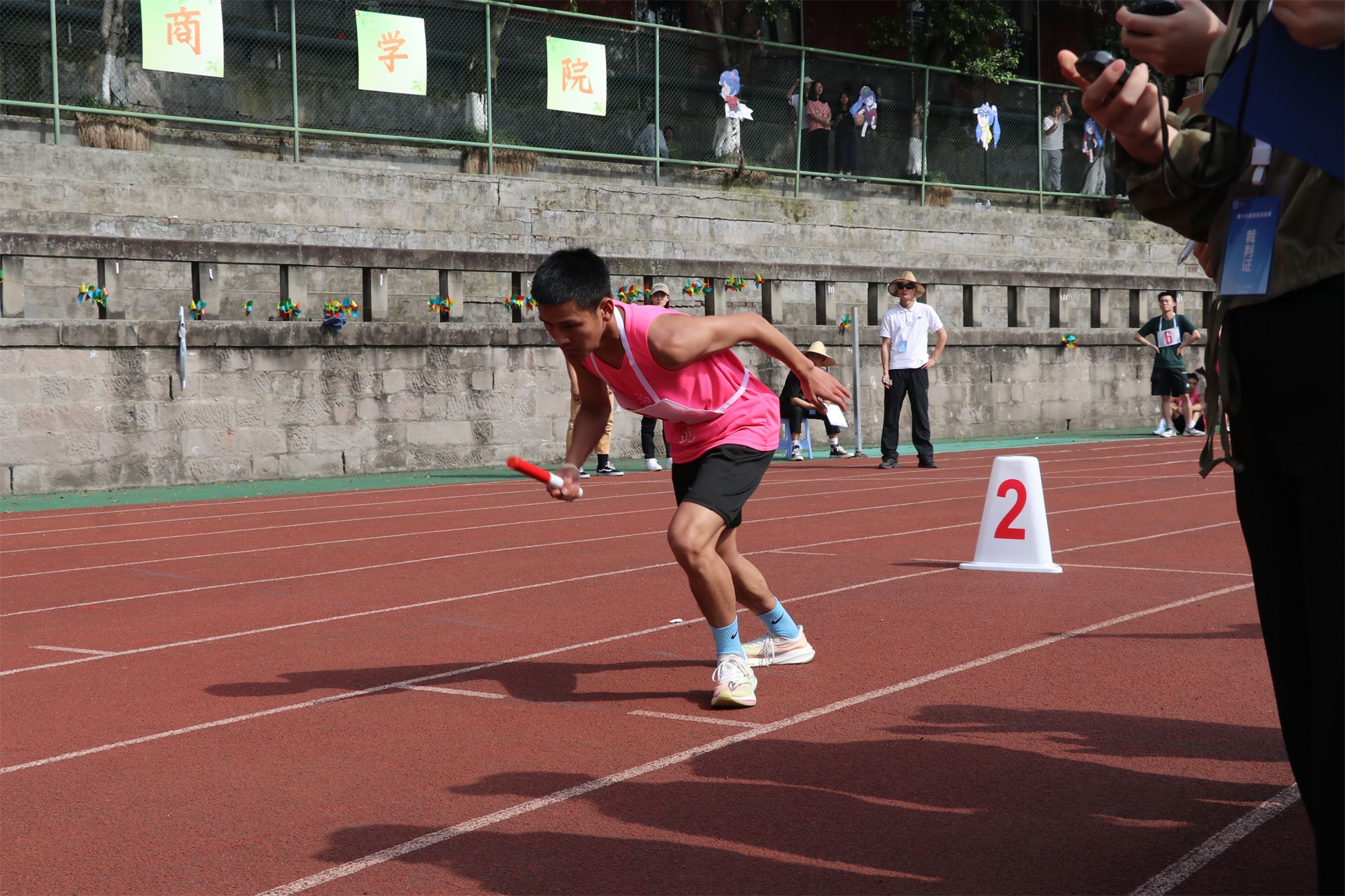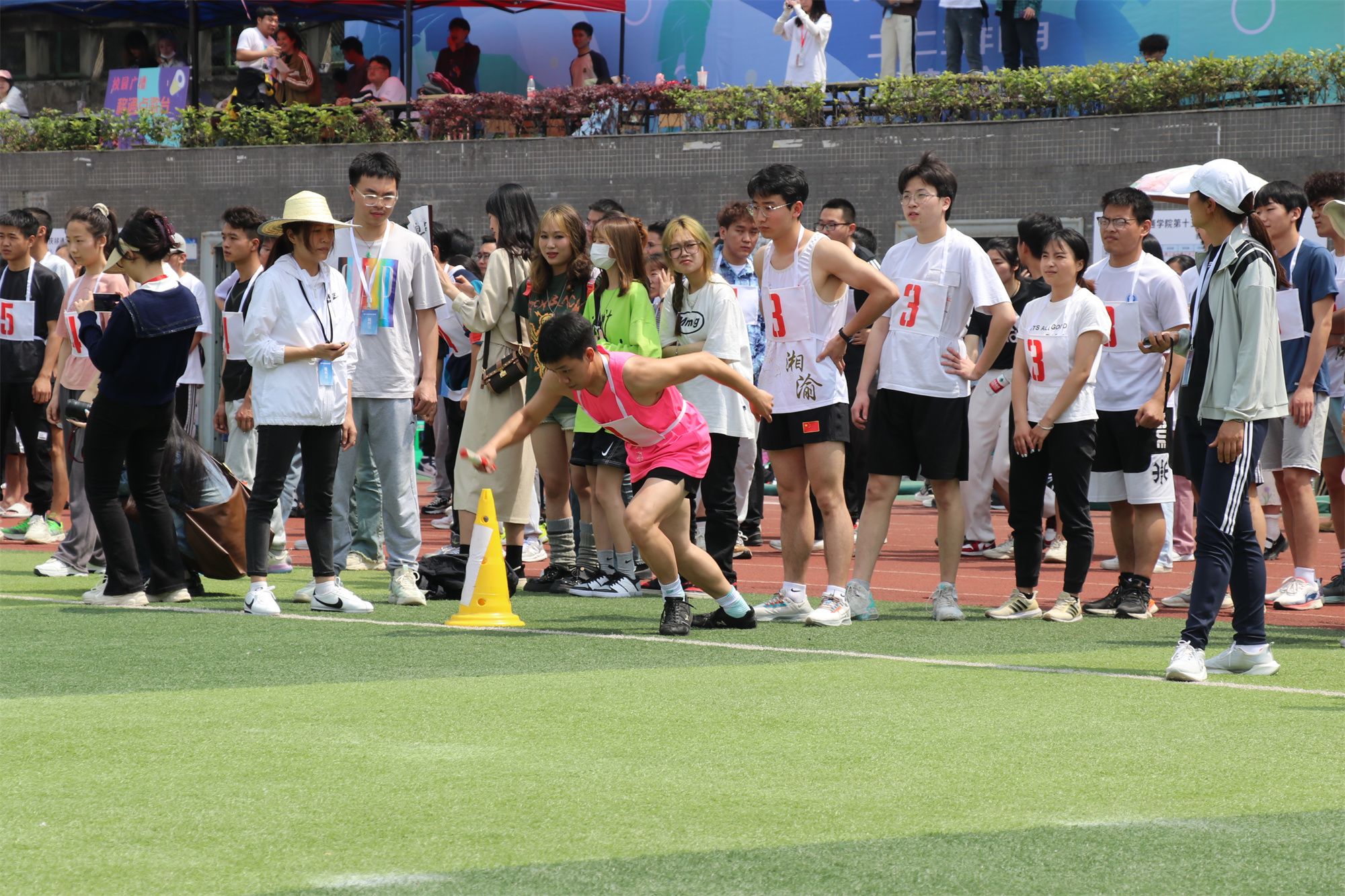 在赛场上表演出彩的可不止有运动健儿们,场外的观众与工作人员们也同样出色。他们有的顶着毒辣的太阳将运动健儿们的出彩表现记录为永恒;有的为比赛顺利进行而跑前跑后,尽心尽力;有的为健儿们的精彩表现喝彩加油,表达支持与鼓励。他们虽然平凡不耀眼,但却不可或缺,每个人就像是精密机械内的零件,缺少其中一点,运动会便难以顺利进行。