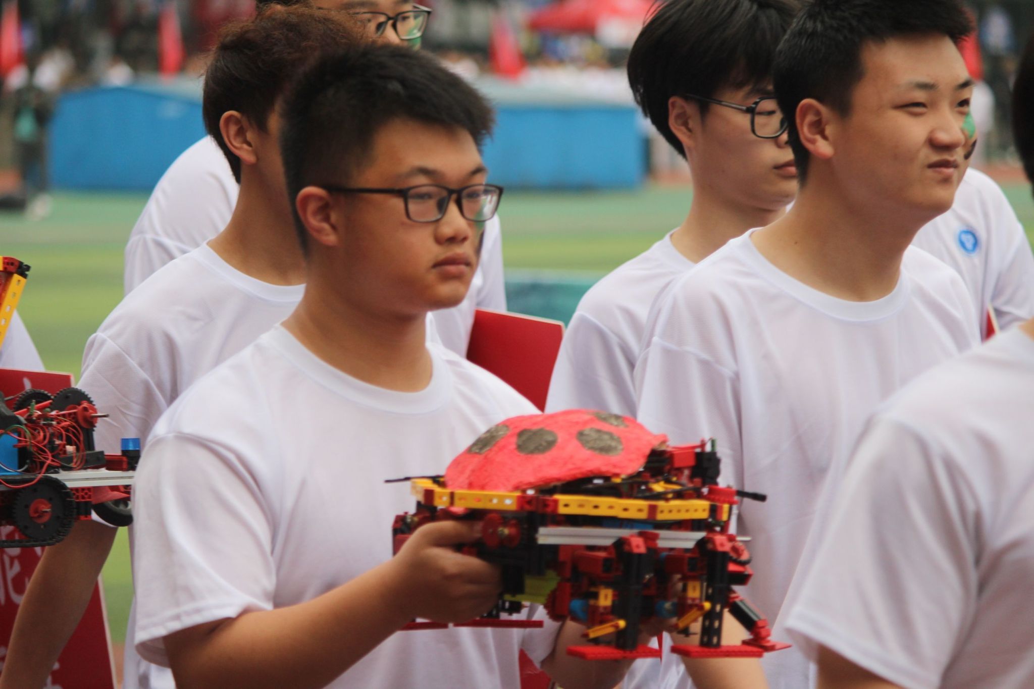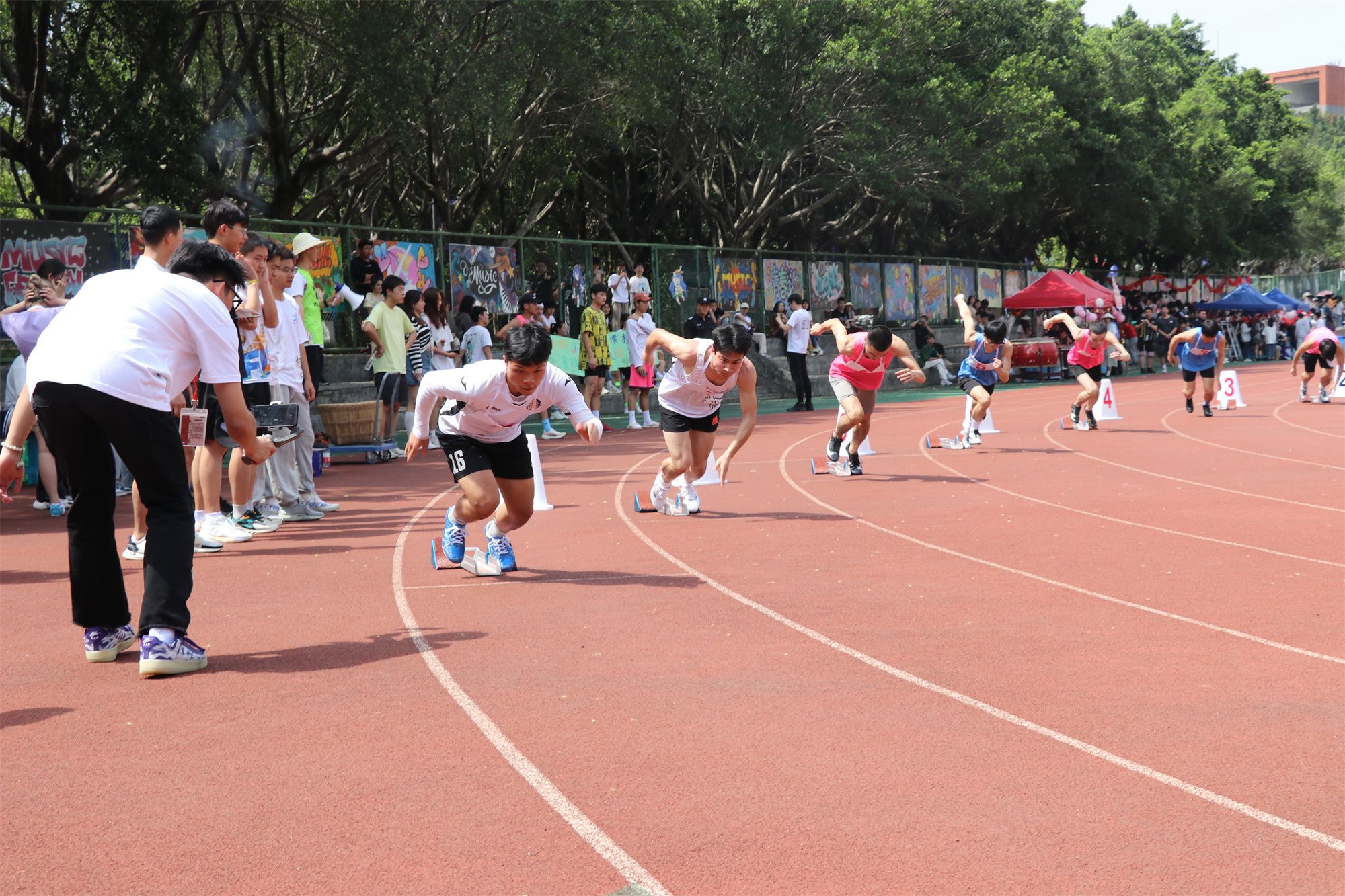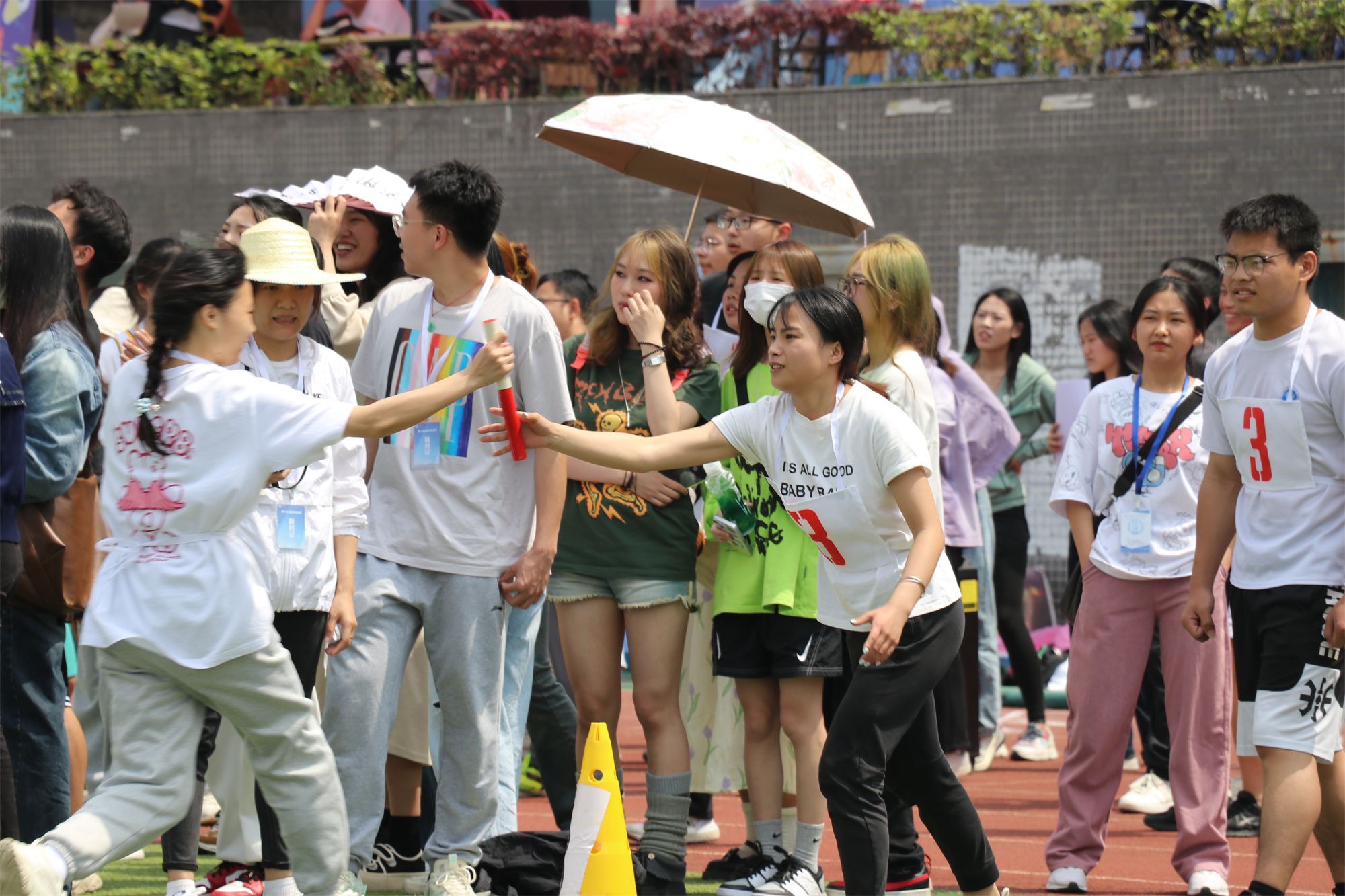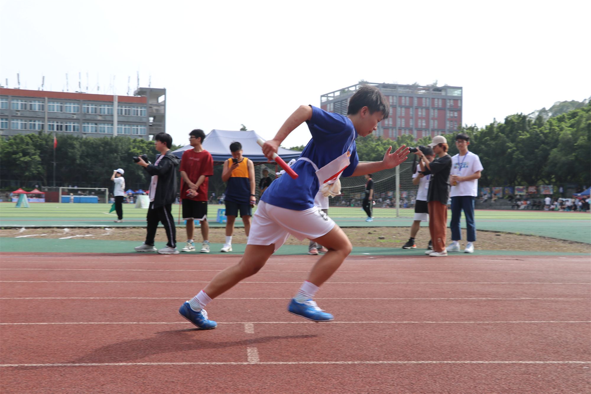 在赛场上表演出彩的可不止有运动健儿们,场外的观众与工作人员们也同样出色。他们有的顶着毒辣的太阳将运动健儿们的出彩表现记录为永恒;有的为比赛顺利进行而跑前跑后,尽心尽力;有的为健儿们的精彩表现喝彩加油,表达支持与鼓励。他们虽然平凡不耀眼,但却不可或缺,每个人就像是精密机械内的零件,缺少其中一点,运动会便难以顺利进行。
