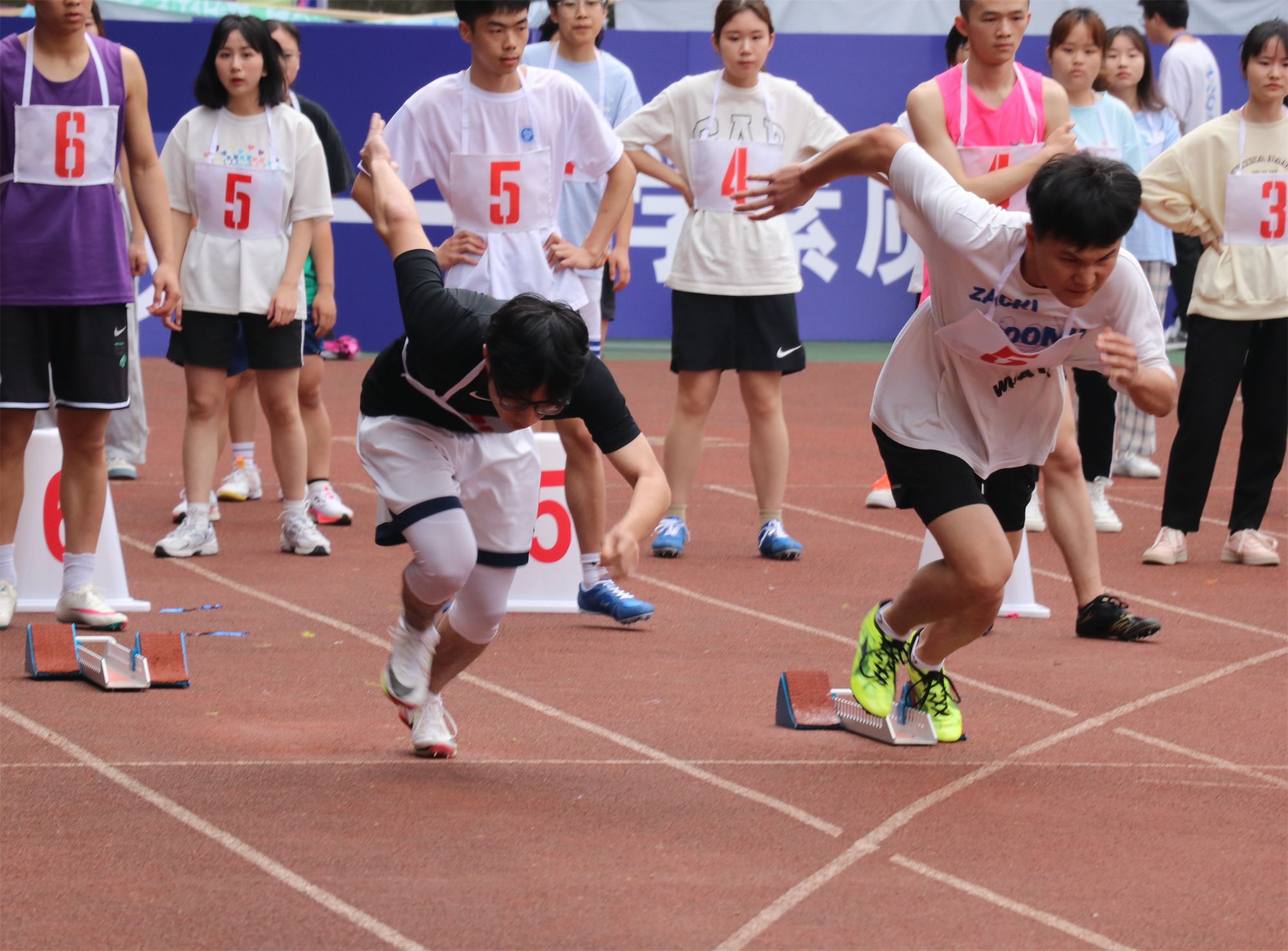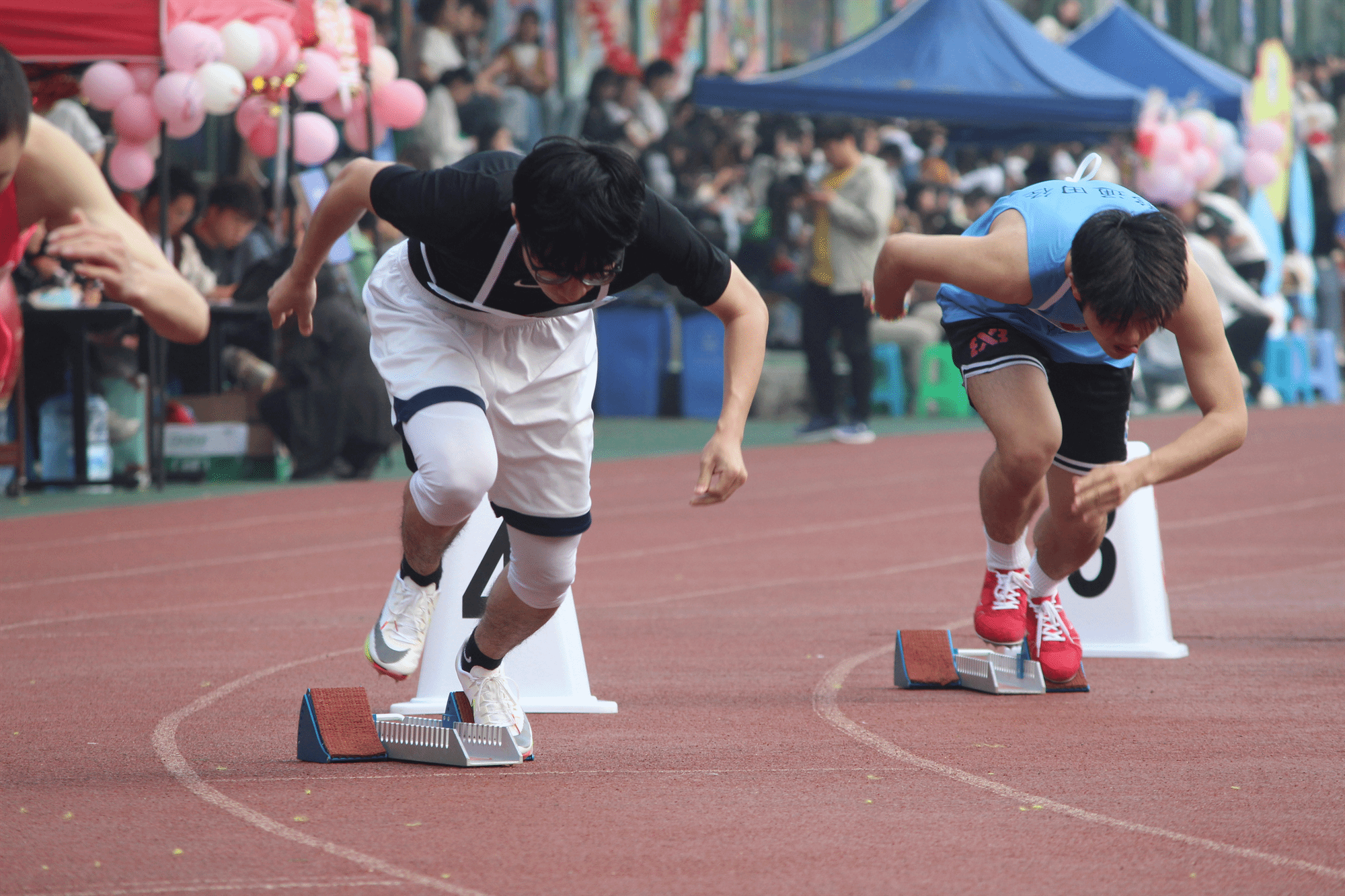 在同学们的欢呼中,百米比赛拉开帷幕。智工健儿们在跑道上热身结束后,便做好起跑动作,紧绷精神与肌肉,随着一声发令枪响,健儿们便如离弦之箭般冲刺而出。最终,我院宋世壮与徐翰笙分别取得学生男子组第一名与第七名的优异成绩。