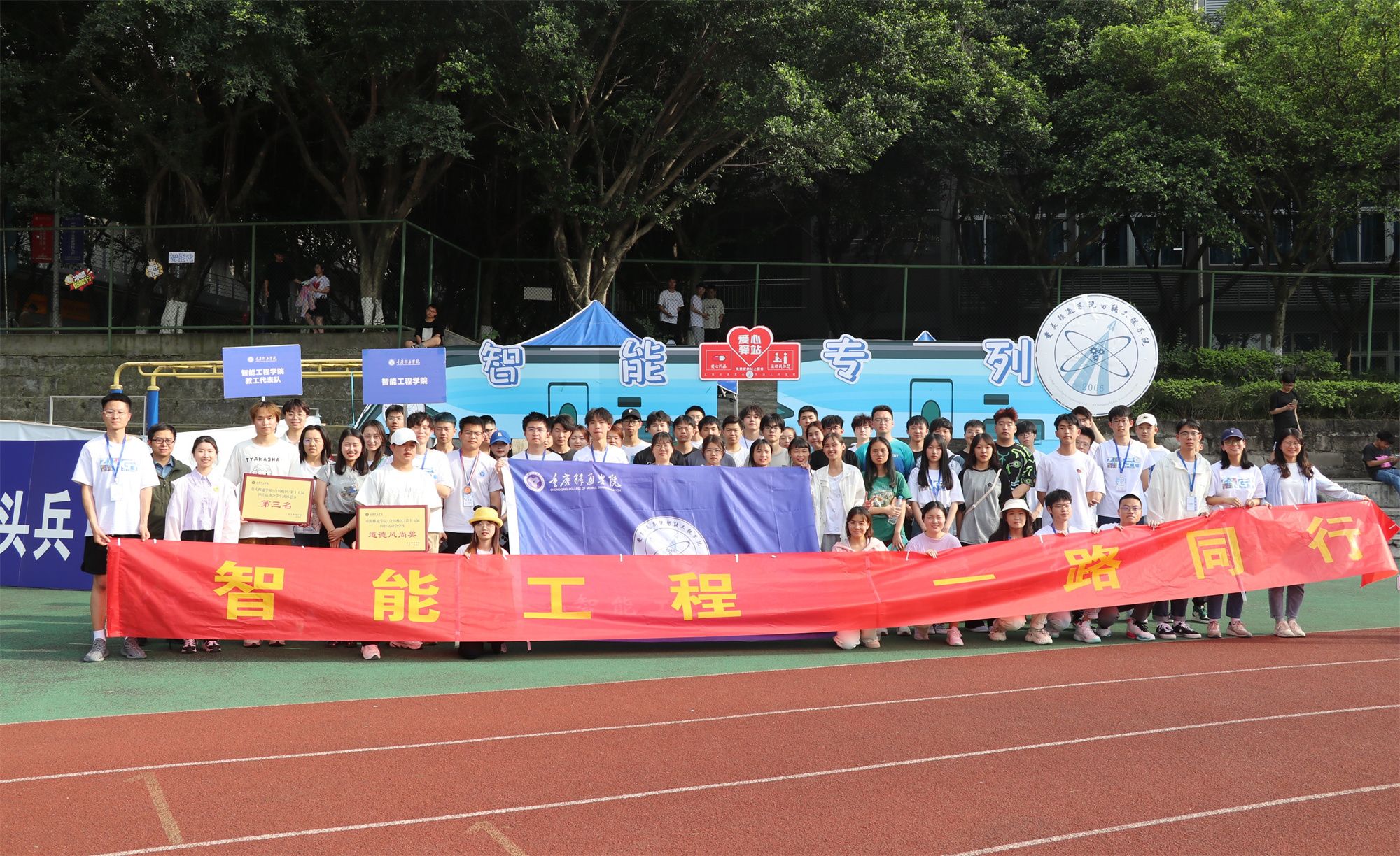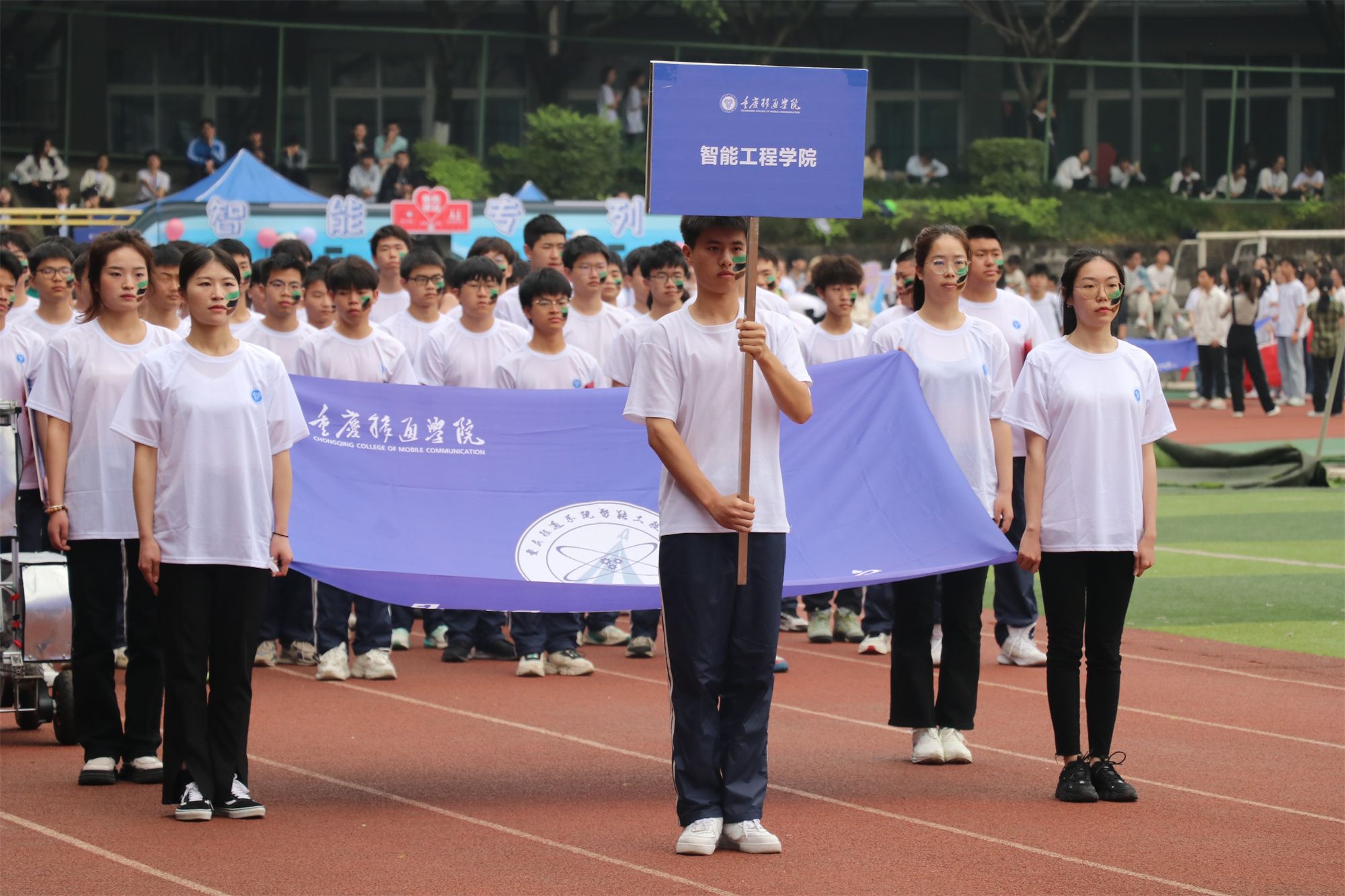 绿茵操场,喧腾鼎沸,风清凉春意暖,在铮铮军鼓声中,4月13日上午8点整,重庆移通学院第十五届田径运动会暨第十届校园体育节在合川校区运动场拉开序幕。智能工程学院全体师生以微笑展露自信,以热情迎接挑战,以热血冲击记录,以激情争夺桂冠。在这场盛会中,智工师生将会以全新的姿态迎接全新的挑战,打造全新的自我。