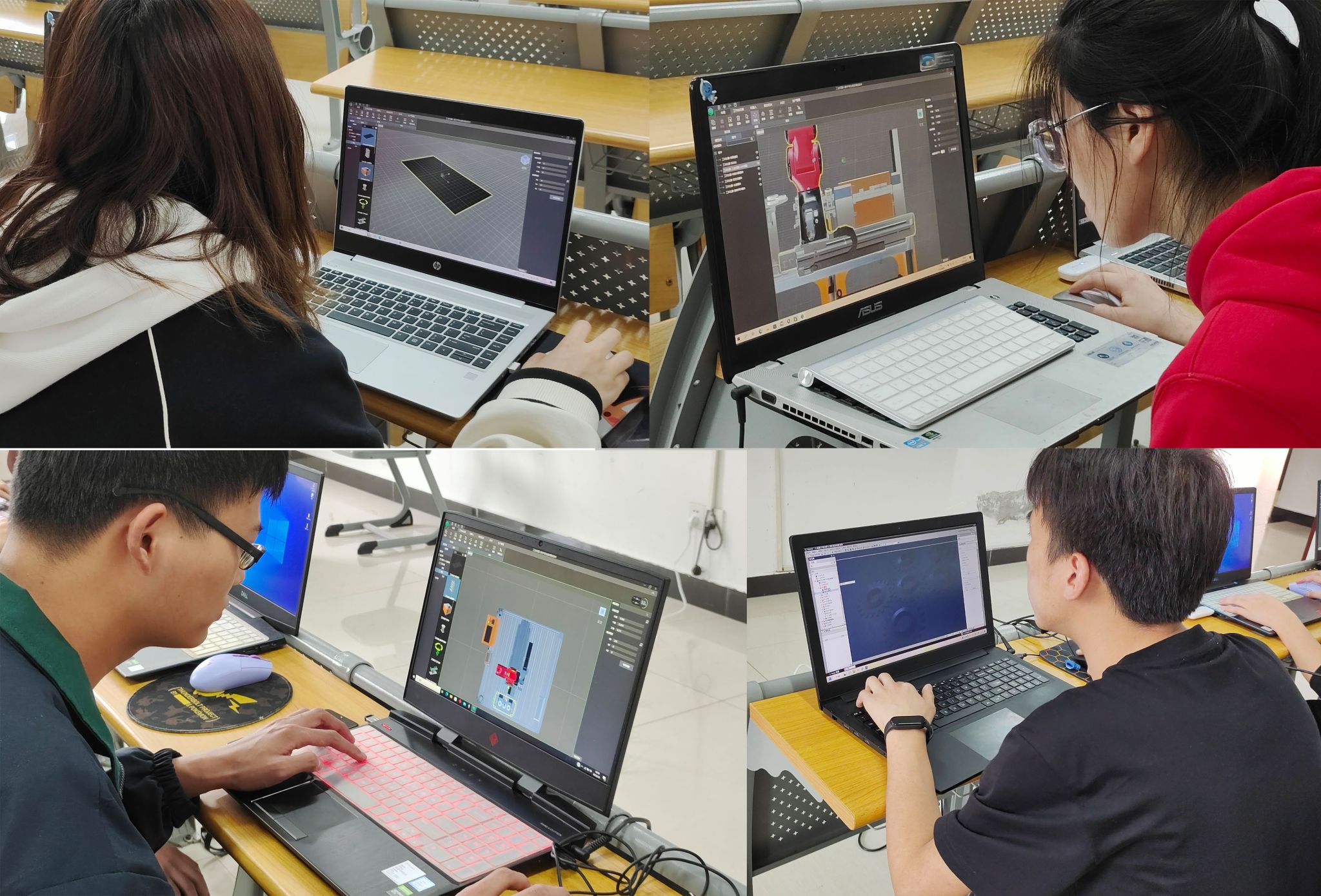 该赛项要求选手根据比赛要求,制定工业机器人装配工艺,然后在给定的软件中选择合适的机器人模型和功能模块,完成电磁式发动机的自动化虚拟装配与运行调试。比赛时间为一个小时,评委们以作品完成度进行评分。其中包括产品装配工艺路径规划、自动化装配工作站搭建、工业机器人虚拟产品装配运动仿真设计等功能实现。比赛现场非常考验团队合作与赛场纪律,若团队成员沟通中出现问题或配合不好,都会对比赛结果造成不可挽回的损失,但整体看来,各个团队间的配合十分默契,在规定时间内顺利完成了调试仿真。