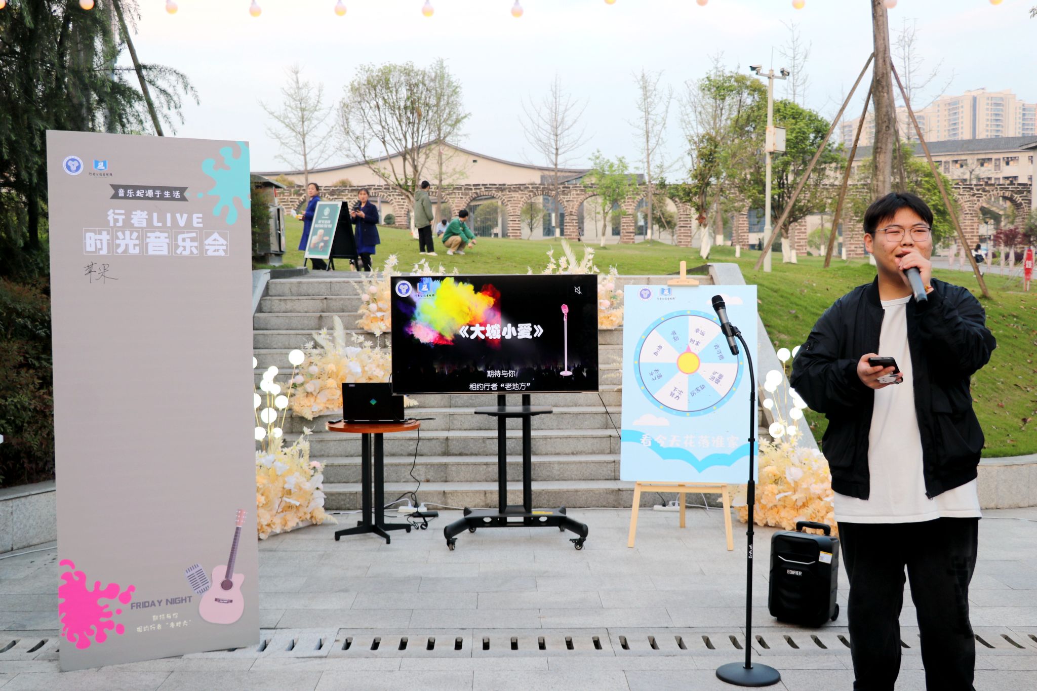 或婉转,或铿锵,这是音乐;时坐时立,沉醉忘我,这是我们。3月31日,夜幕下的行者公园星光闪闪,晚风轻轻吹拂,围坐在荷悦书院池塘边上,书院学子相约共赴一场轻松愉悦的行者LIVE时光音乐会,在悠扬的音乐与周五的暮色闲暇里,一同重温那些经典的旋律与记忆深处的感动,让学生在实践与体验中,以观察者、参与者、创造者等角色互动交融,不断得到浸润、改变和成长。
