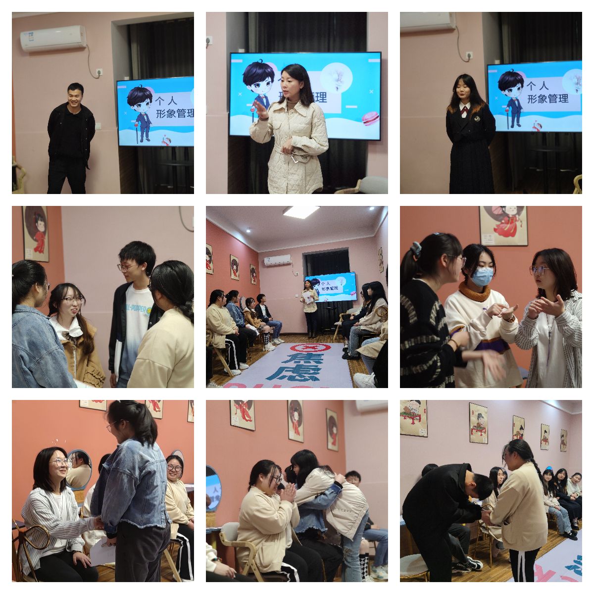 3月9日下午16:10,艺术教育中心李聪老师于别都书院颜究室开展了以“改变第一印象”为主题的实践活动,带领同学们开启“准职场人”的蜕变之路。活动过程中,李老师引导同学们从台下走到台前,以自我介绍的方式尝试突破自我。紧接着以小组自由合作的方式,小组成员之间从对方衣着、精神面貌、性格特点等方面进行相互点评,帮助同学们认识自我、敞开自我,也使得互动氛围更加活跃。在这一个半小时的近距离互动中,同学们从陌生到熟悉,从拘谨到互相拥抱,完成了从最开始只看对方的后脑勺到后来能够与同学们面对面交流的蜕变。