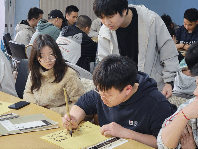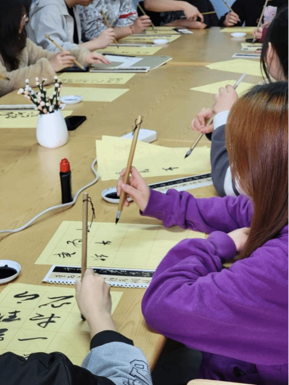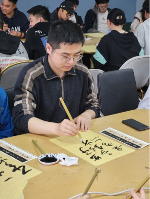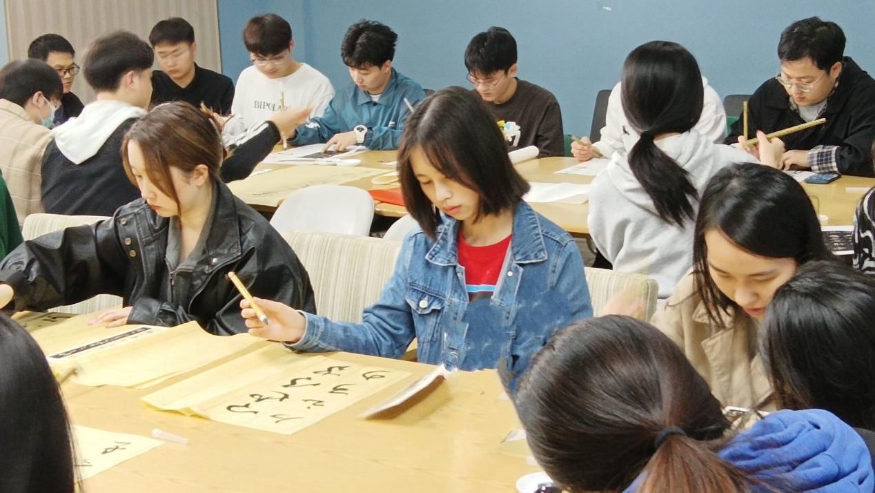 在写作练习结束后,不少同学分享到,我没有学习书法的基础,完全是凭着兴趣热情去的,不懂书法,甚至不知道什么是临帖,但我觉得学书法,尤其是初学者,最重要的是坚持,不能三天打渔,两天晒网,所以这次活动也点燃了我对于书法的热爱,我会在后续多与老师联系,多向专业人士请教。还有一些有基础的同学分享说,写字功分内功和外功,内功最重要的就是读书,现在好多是读书人不写字,写字人不读书。学书法,要多读国学经典,譬如经史子集,诗词歌赋,因为书法和国学密不可分,书法就是从国学这一沃土中生长出来的。当然也要多读其他类型的书籍,去汲取不同能量,比如在信息产业大咖传记中感受商科思维,领略大咖的前沿视角。