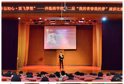 踏着青春的节拍,激扬着青春的风采,我们向金秋走来,一路欢歌,一路笑语,万物在十月欣然等待。2018年10月10日中午淬炼商学院在下里巴人剧场成功举行了第二届“不忘初心,放飞梦想”我的青春我的梦演讲比赛决赛。出席本次活动的评委老师有淬炼商学院副院长谢银平老师、各板块指导老师及辅导员老师。