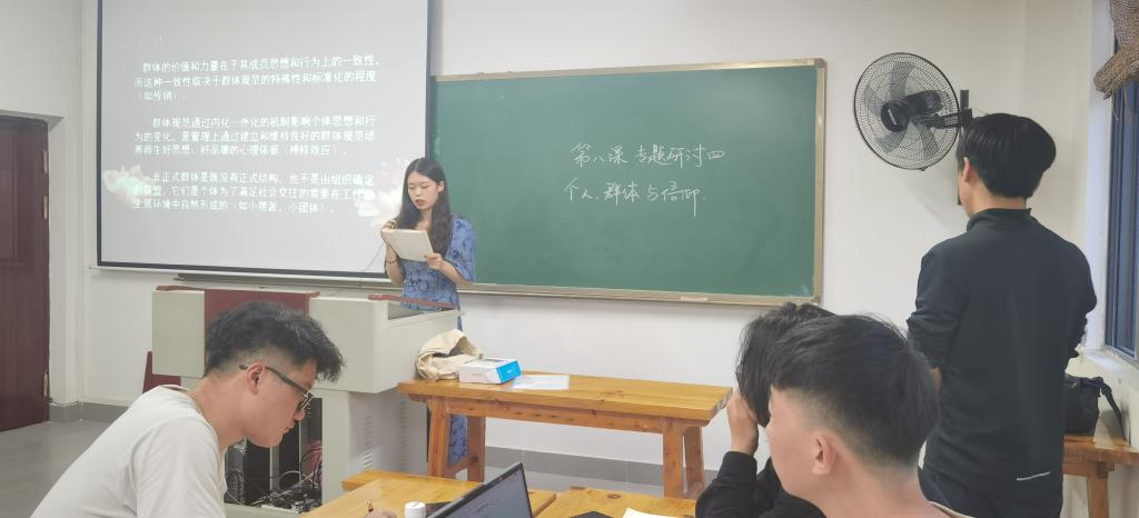 时事热点亦是一个同学们所能够把握和接触的话题,张媛同学举着例子,“当下火热的话题‘熟鸡蛋返生’的话题”。张媛从社会学,心理学角度将其剖析。群体的心理特质是“情绪化,敏感化,易冲动”。更有着群体理性低于单个个体的总结,就群体而言,就像将群体的智商降低了。这样奇怪却确确实实存在的结论发人深省。