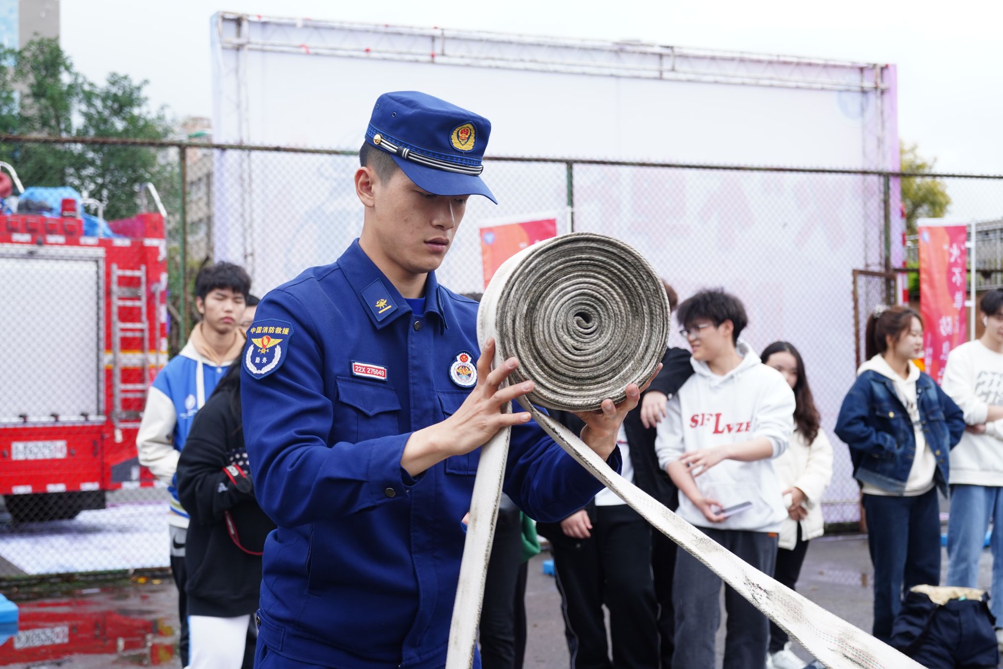 活动创新打造,惊喜流程升级,将消防演习与坚韧挑战融合。为全面提高学生面对灾害的自救能力,进行一系列消防技能比拼。“你好,火焰蓝”消防服穿戴挑战,参赛者在消防员的指导下完成消防服穿戴,培养参赛者自主穿戴消防服的能力。你卷我卷大家一起卷的“内卷”之王,参赛者们将散落的消防水带进行还原整理,让参赛者通过团队合作进行完成任务。“山城骑士”环节中,参赛者将轮胎从起点以翻滚的形式运至终点,了解和锻炼参赛者的体能,也使在日常生活中有机会逃脱突然发生的灾患。快乐消消消的“地宫一线消”环节,参赛者需要与对手一起竞争将各种消防标识连成一条线,借此让参赛者认识并识记各种消防标识。