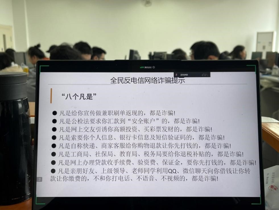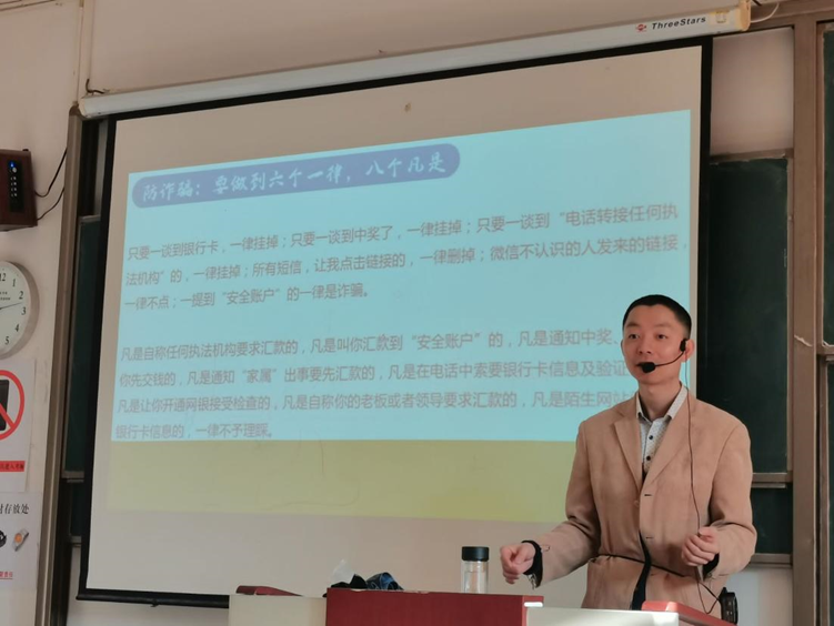 多位老师的反诈宣传,使同学们了解了电信网络诈骗的形式、手段和特点,进一步增强了大家的安全防范意识和防诈反诈能力。