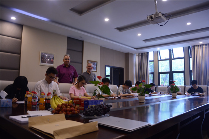 06月13日至14日, 来自德国汉姆-利普斯塔特学院的Wibbeke Miehael教授、Krome Jurgenwilhelm教授以及杜伊斯堡语言学校校长Dirk Scholten教授三位考官给2015级电气工程及其自动化(中德)专业的同学进行了汉姆-利普斯塔特学院入学选拔考试。考试在中德会议室按照笔试加面试两个阶段进行。三年前的憧憬、三年来的坚持,都将见证于这70分钟的笔试、15分钟的面试中。