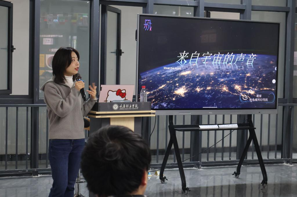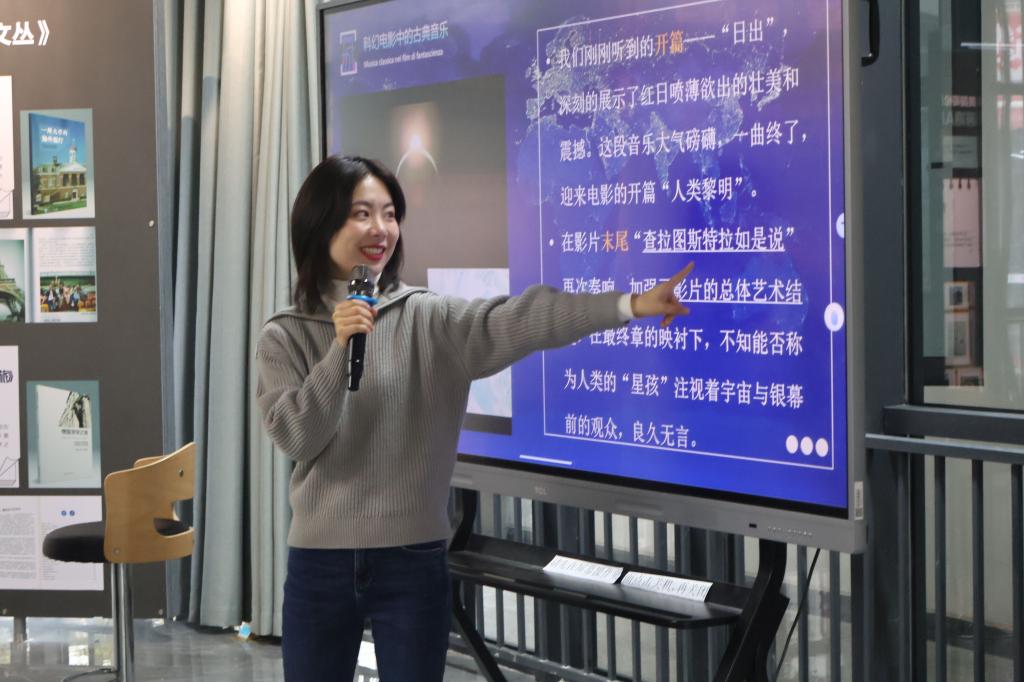 2023年3月21日,由廊桥书院与钓鱼城科幻学院联合举办的以科幻作品解读为主要内容的讲座——“科幻看世界(第12期)”在南湖书院国际文化展厅举行。本期主讲嘉宾是来自钓鱼城科幻学院的首席女高音谭琛老师,谭老师以《来自宇宙的声音》为主题,通过带领同学们鉴赏《第五元素》、《2001太空漫游》两部经典科幻电影中的古典音乐,向同学们展示了古典音乐与科幻电影画面的完美融合。