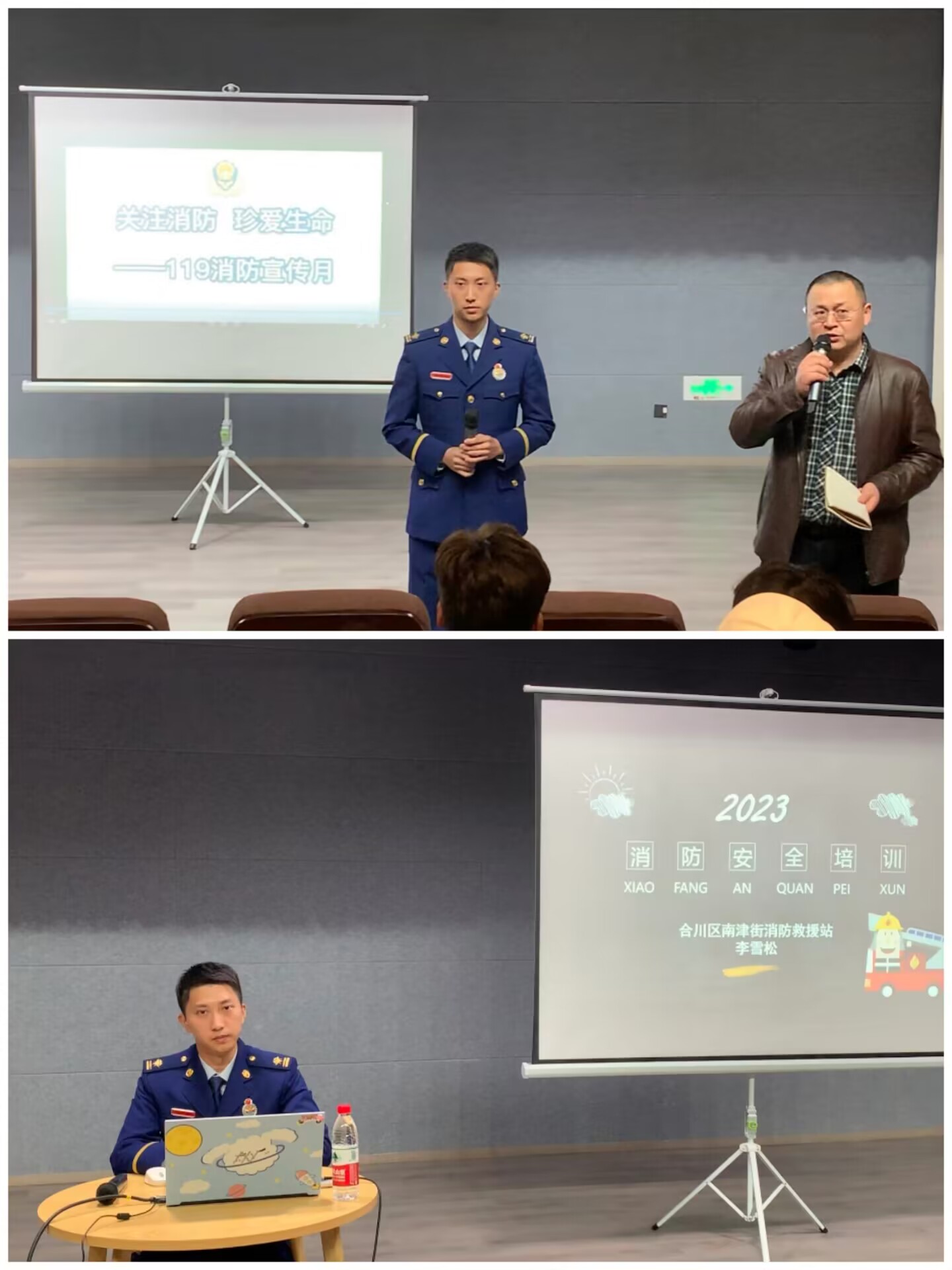 李教官分享了日常生活中如何去预防火灾的发生。如,电器老化停止使用、电器附近不可堆放可燃物、闻到刺激性气味断电检查等。李警官提出当发生火灾时,应第一时间进行紧急处置,秉承“灭早、灭小”的原则,并播放了火灾发生案例的多个视频,进而增强平时的防范意识。