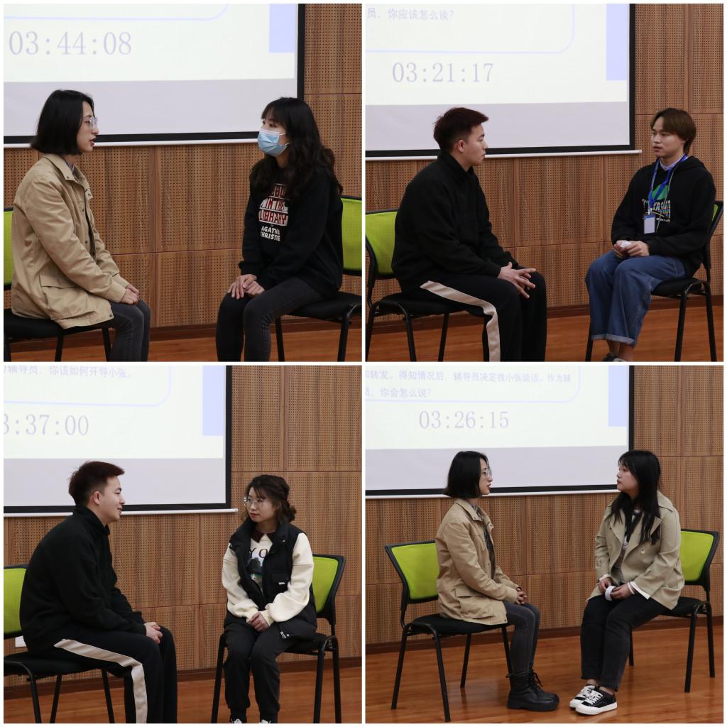 在谈心谈话环节,比赛通过角色扮演令情景再现的方式开展,所有情景均反映出大学生日常学习生活中包括学业问题、学生组织工作问题、学生心理健康问题、学生网络舆情事件等各种问题。辅导员们通过聊天的方式,结合国家方针政策、社会热点及自身生活工作经历,晓之以理,动之以情,完美地为同学们解决各种问题,且逻辑思维严密、建议客观中肯,让人不得不惊叹智能工程学院辅导员的专业素养之高。
