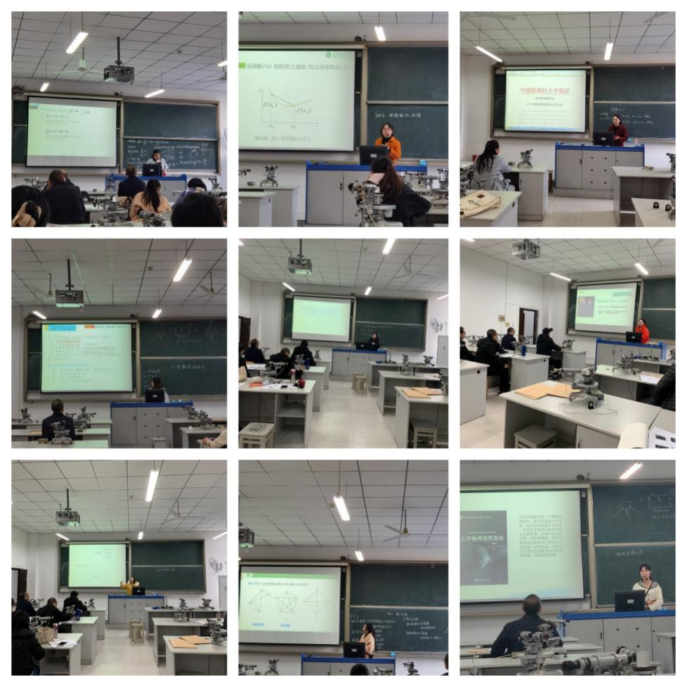 来自于物理教研室、基础数学教研室、应用数学教研室的12名青年教师参与了本次比赛,比赛过程中各位参赛教师通过说课和讲课充分展现了良好的教学水平、先进的教学理念、新颖的教学方法,每人都展现了自己的特色。