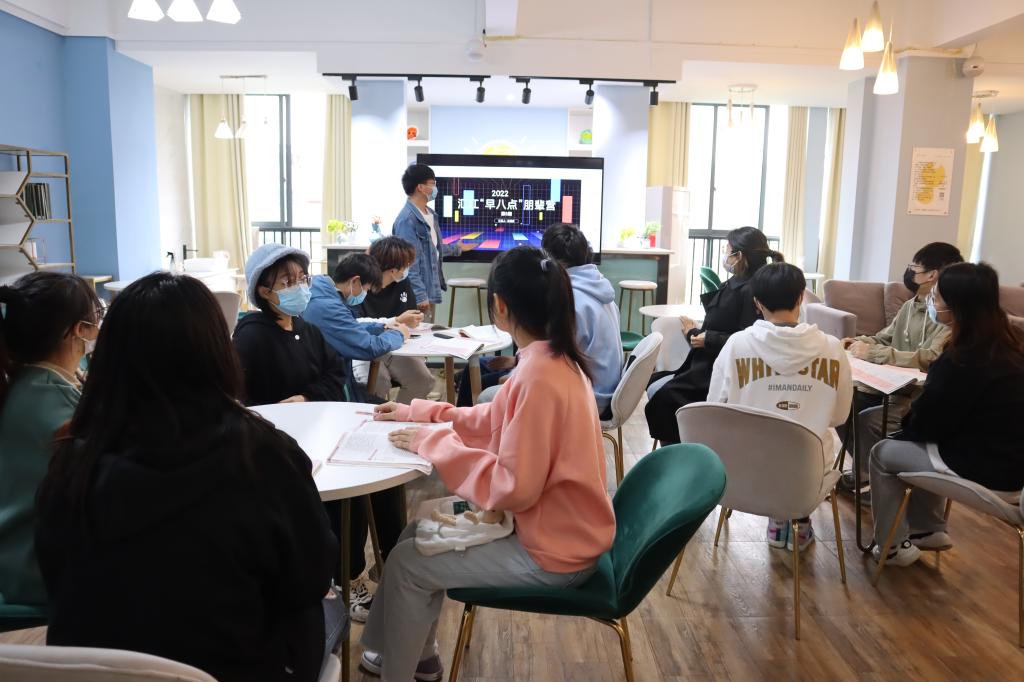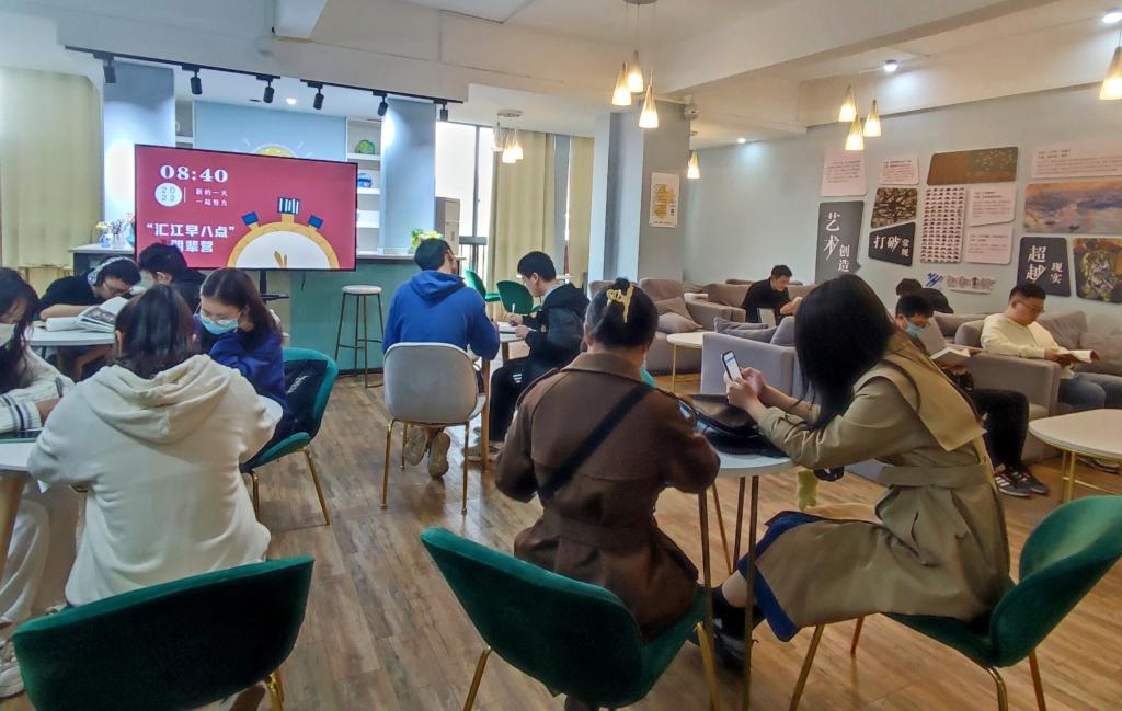 一年之计在于春,一日之计在于晨。早上八点,一个让大多数学生觉得恐怖的时间,也正是每个人记忆力和精力都非常充沛的时刻,是一天里的黄金时段。近期,汇江书院立足书院学子需求与书院空间能效提升,推出“汇江早八点”朋辈营活动,同学们在兴趣共享与朋辈互助的环境下提高专业技能与综合素养,焕新利用书院空间,让每一个梦想,都能在汇江的早上八点扬帆起航!