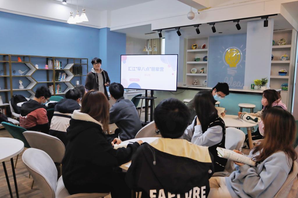 书院为学生提供全天候、全过程的守望和陪伴,并在潜移默化中培养学生的领导力和领袖气质。我们希望能够充分用好书院空间的每一秒钟,而“汇江早八点”朋辈营的推出,也正是为了降低早上和上午书院空间闲置率,提升书院空间使用效率,使得物尽其用,发挥能效。因为兴趣是一个人最好的老师,兴趣能够源源不断地吸引人,让人自发地主动地去继续保持一个前进的动力,因此通过推出学生感兴趣、愿意主动参与、主动走进书院的项目,研判和推进开展的期数和频次,就能够很好地营销书院场地,提升书院空间在上午时段的使用效率。于此同时,汇江书院还积极协调各学业导师工坊项目,深挖学生需求,在活动形式和内容上做进一步深化,让书院空间在早上和上午时段开展的项目既有意义还有意思,持续为书院空间的空间效能、多元设计、学生成长体验做提升,让学生在共享互动互助、多元文化浸润中成为有专业技能、有领导思维、有情怀责任的新青年。