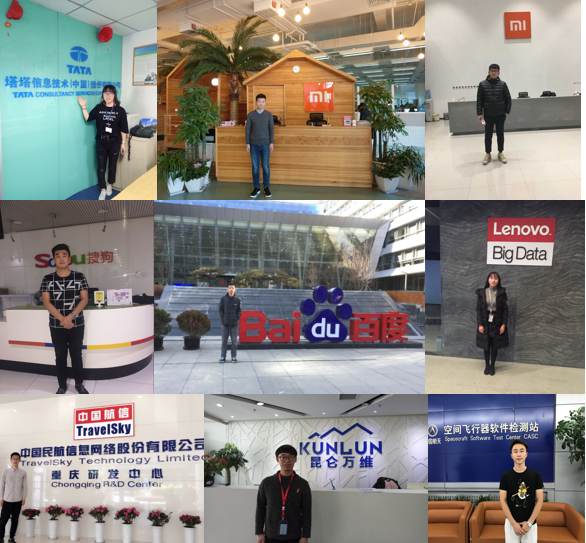 为了扩大学员就业范围,促进学员职业生涯发展,双体系鼓励一批2018届优秀学员远赴北上广深等一线城市就业,顺利打开北京、深圳等就业市场,拿到了不少行业巨头高薪offer。杨祖豪、陈成入职百度;梁永锐、张乃骞入职小米;史凯欣入职京东;王梦思入职联想;李鹏飞入职搜狗;曹曦曦入职中国民航信息网络股份有限公司;郭聪入职塔塔集团;陈遥、陈美伶等9名学员入职中国航天科技集团;陈翔宇、徐鑫等12名学员入职中国航天科工集团。
