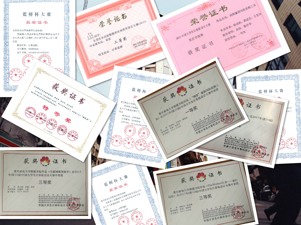 (部分获奖证书)