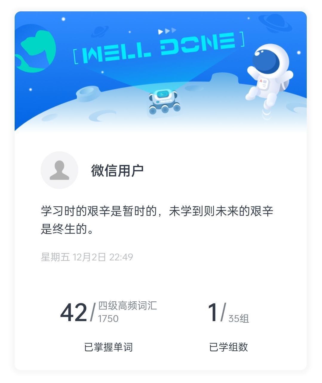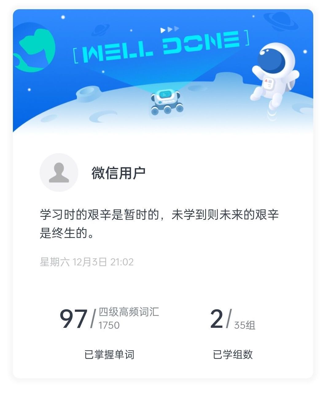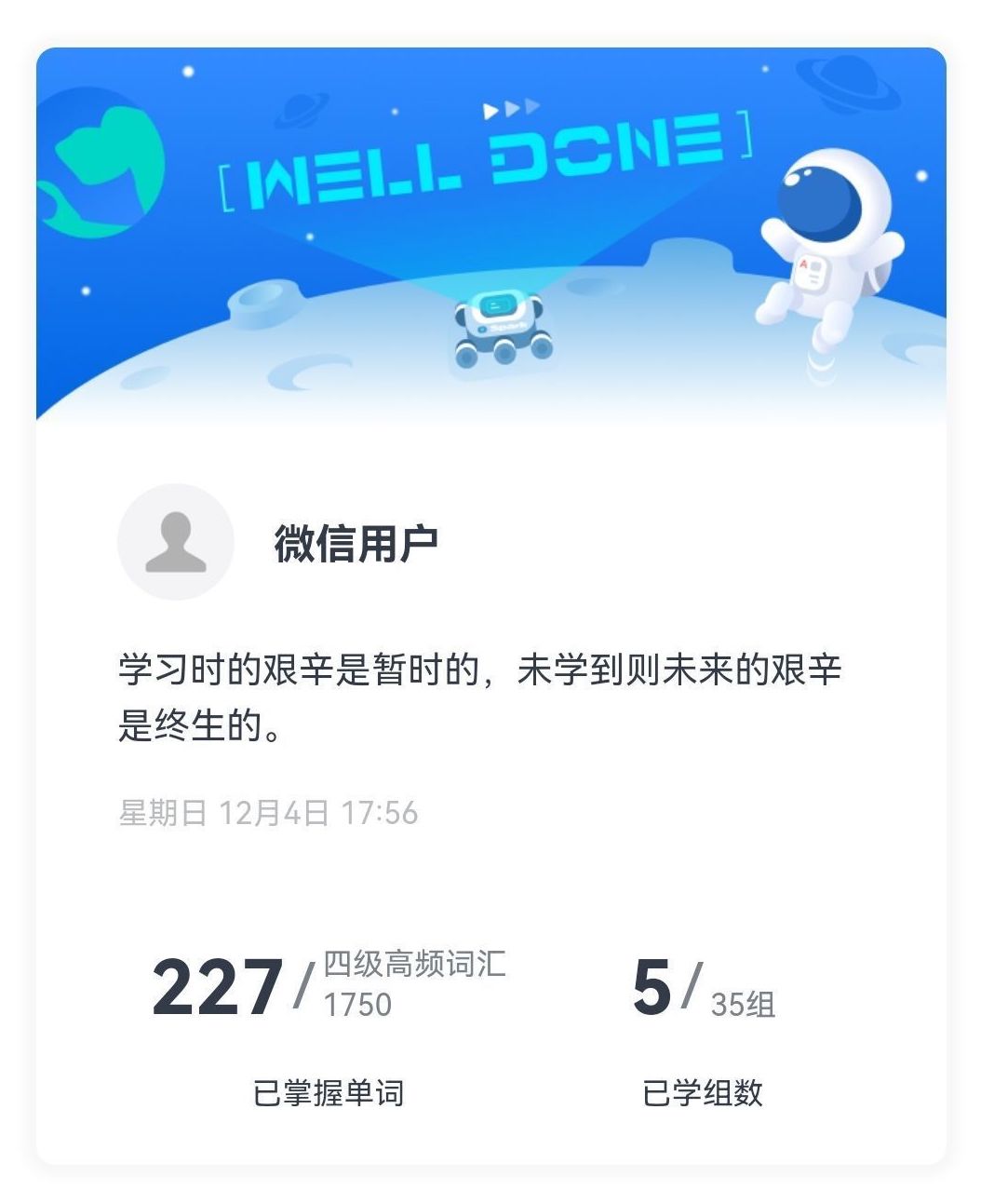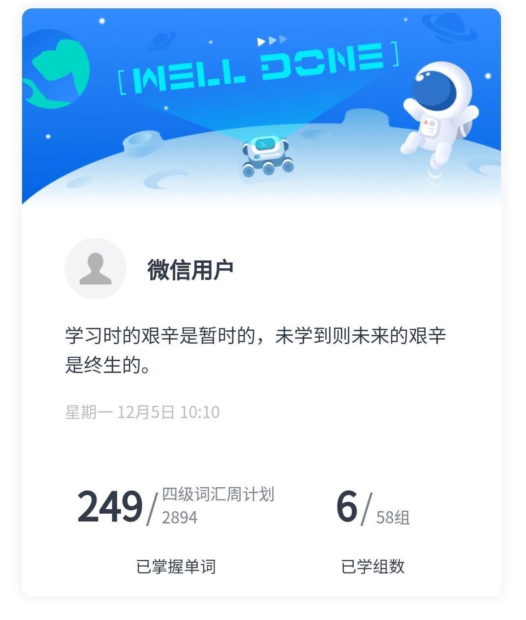 为进一步帮助同学们增强学科知识,打造书院内良好的学习氛围和朋辈圈层,培养学子们正确的学习习惯,为接下来的期末考试和四、六级考试打好坚实的基础,做好充实的准备,行者公园书院群特此开展了自12月2日-8日为期五天的“词之以恒,英有尽有”单词打卡活动。