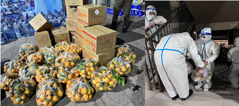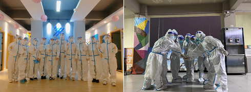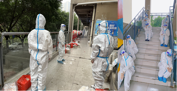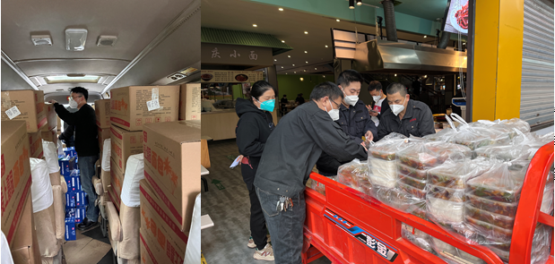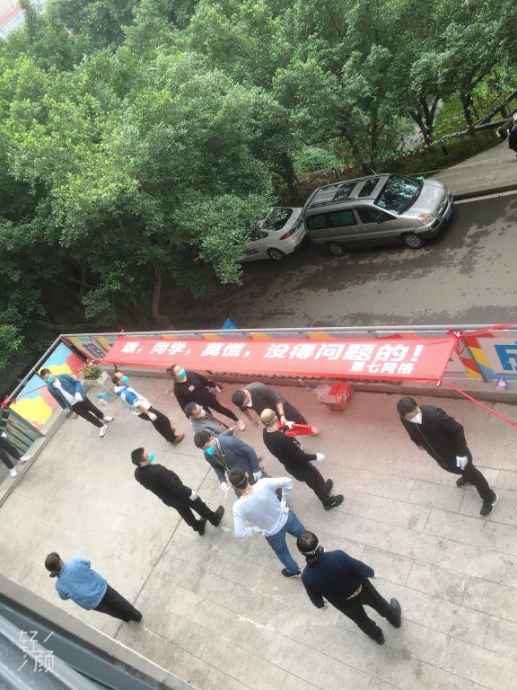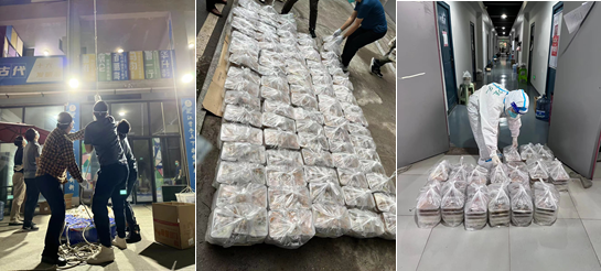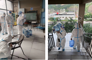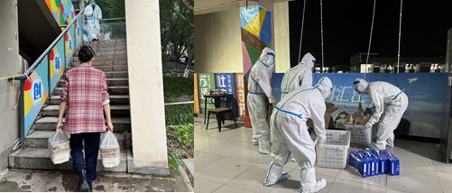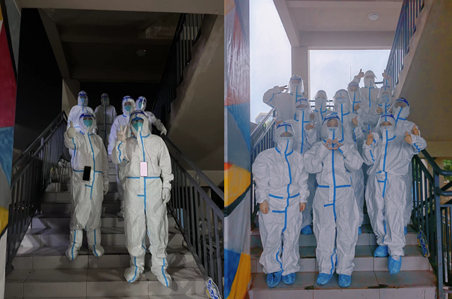 将每一份餐从食堂配送到每个楼层每个同学的寝室,看似一份简单的工作流程,没曾想中间却经历了多次的效率革新。从等待食堂配送到食堂窗口主动“接饭”、从单人提饭上下楼到团队成员接龙送饭,从每层楼接龙到滚轮上阵空中层层运输、从全体上阵到极致轮换最大化利用有限团队成员,送一份餐到同学们手中,变成了一场第七网格演练、融合多部门团队,提升多部团队战“疫”力的聚合之战。每一套防护服下是3个小时左右汗水浸润的故事,每一顿餐背后是温暖和责任的传递。病毒可以被隔离,但温暖不会被隔离。