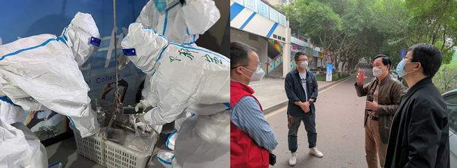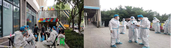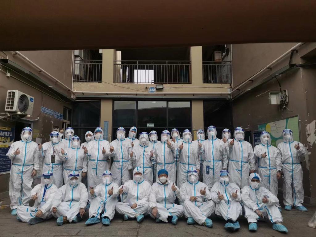 志愿者老师们白天为同学们用餐奔波,统计同学们疫情防控情况,晚上在防疫点值班,守护好每位学生。待到工作安排妥当后,再回到办公室休息。在高强度的工作下,脸上虽有疲惫,第二天还是会以最好的精神面貌投身到防疫工作中去。