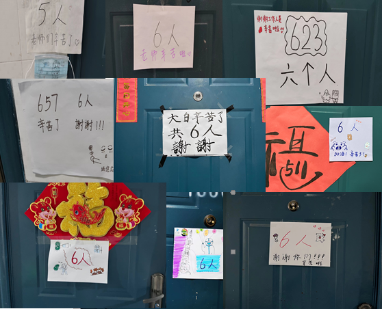 我们始终坚信爱心是志愿者的舞台,奉献是志愿者最美的诗句。在门口的纸条上留下“老师们辛苦啦”是同学们对于志愿者老师们的付出表达最诚挚的感谢。