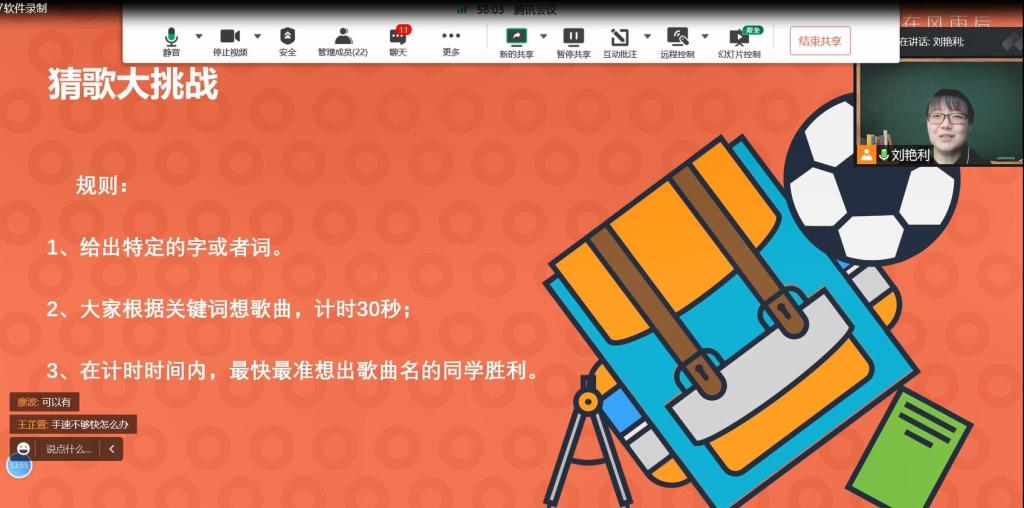 刘艳利老师为了让同学们的封寝生活丰富多彩,在授课环节奇思妙想,融入了有趣的猜歌大挑战,让同学们积极参与其中。上课除了学习知识以外,还可以听到我们耳熟能详的歌曲,愉悦身心。