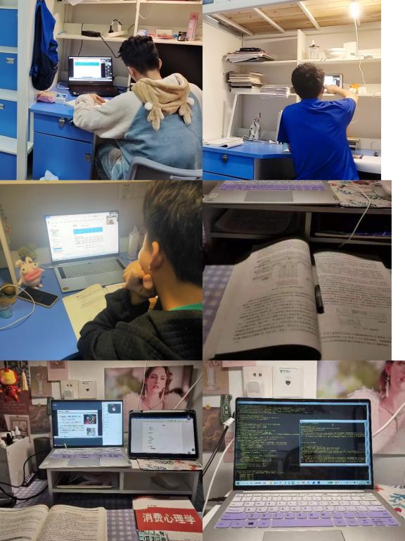 网课期间,宿舍变成第二教室。同学们端正坐于桌前,认真聆听知识,仔细记下笔记,及时完成作业。空闲之余,广泛阅读各领域书籍,给自己的视野和格局“充充电”,给自己的灵魂“除除草”。