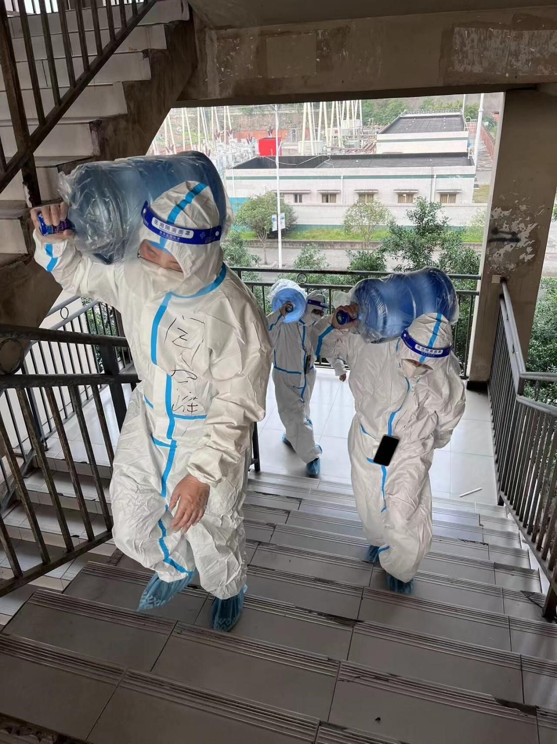 与此同时,学校疫情防控形势严峻,各个部门都急缺人手,学生的配餐送餐和饮用水配送等问题难以解决,学校大批教师志愿者逆行返岗奔赴战“疫”前线,努力为学生提供更好的物质及服务保障。“哪有什么岁月静好,不过是有人替你负重前行”,不管是战斗在核酸检测的一线人员,还是默默在后方提供支援的教师志愿者们,都是值得我们学习的最美“逆行者”。