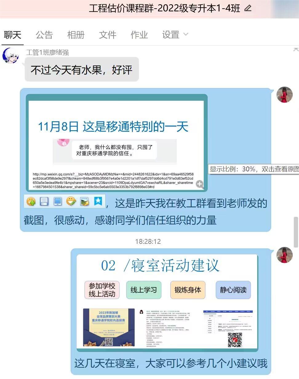 还有我们的学业导师,也在我们课余时间与我们互动,线上给我们心理辅导,关心我们生活,为我们安排紧急物资,时刻关心着我们的生活需求。