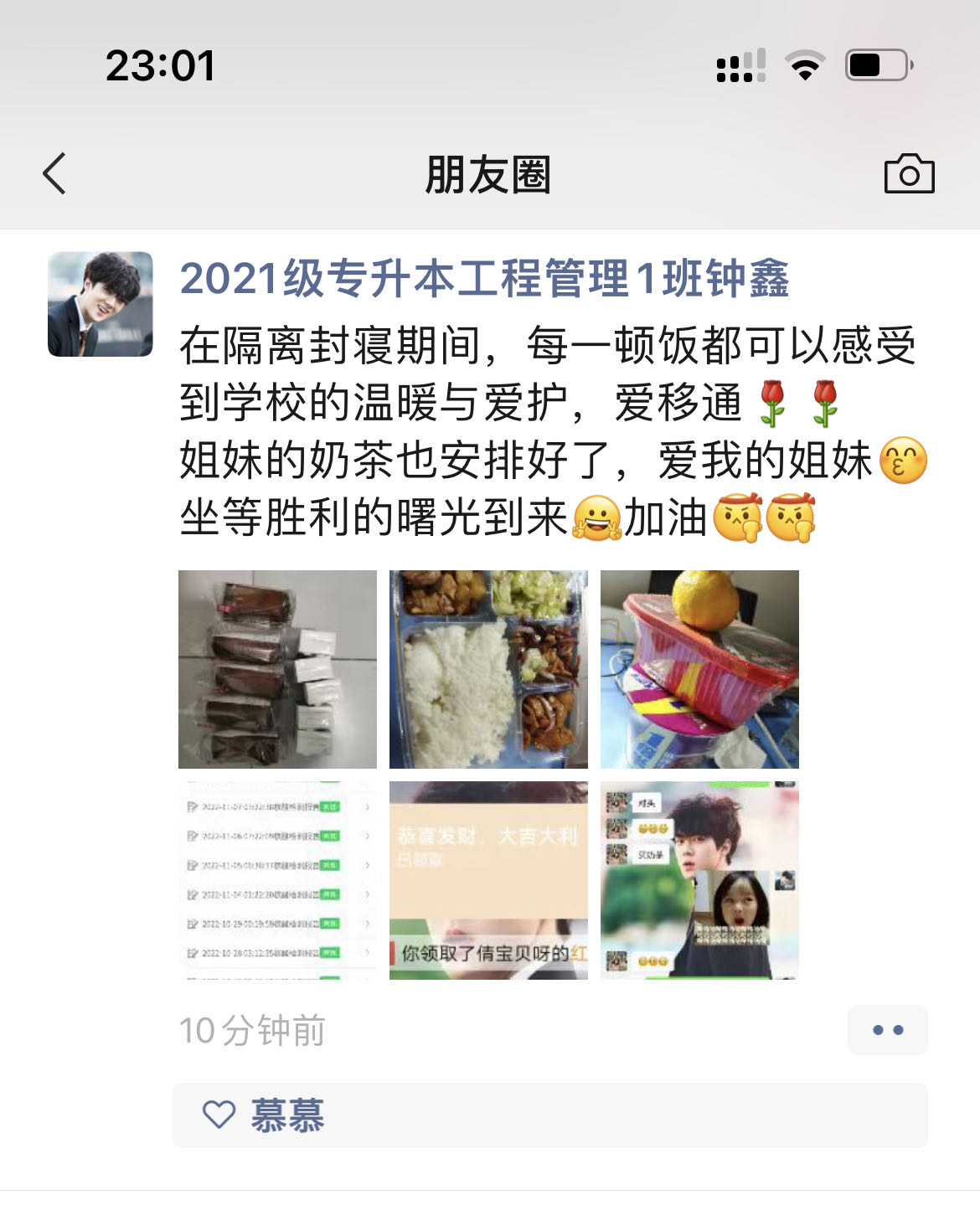 10月8号对于移通人是特殊的一天,为了积极响应学校防疫政策,封寝、封楼我们毫无怨言,但也是这次疫情让我真切感受到移通是一个有爱的大家庭。