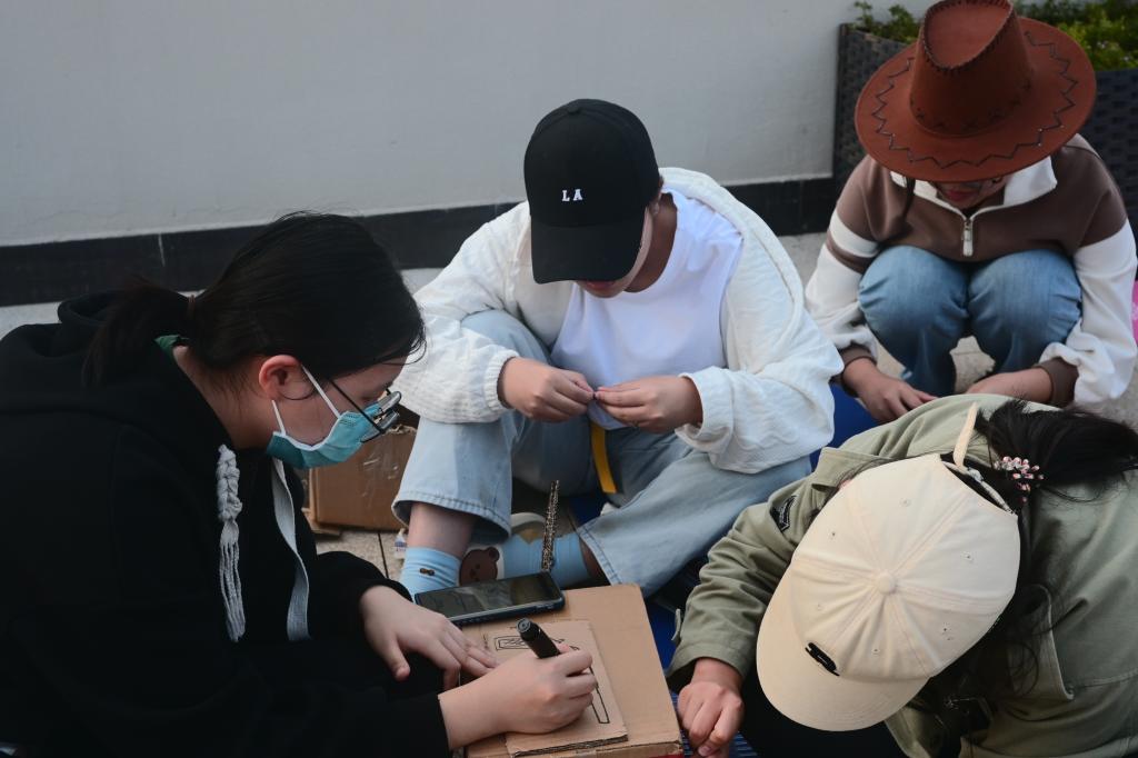 随着双十一购物狂欢节的来临,垃圾堆、角落旁、寝室内的快递盒堆积如山;不聚集、不堂食,打包回寝的外卖盒、咖啡包装袋数量激增。天空长廊下,40余组同学携带着快递盒、咖啡袋子等材料进行宠物小狗和宝藏收纳袋的制作,想象无定义,创新无极限。热火朝天的小狗制作为平时不起眼的纸盒鞋盒增添色彩,精巧的手工改造物描绘出与想象交流的瞬间,一个个咖啡袋被改造成书立、收纳袋、化妆盒,细腻的镜头叙述大家的丰富想象,原本零零散散、看似废品的材料加工后蜕变为各式有趣的宠物与桌搭好物,在想象的天空下,赋予废品生命,营造良好氛围。