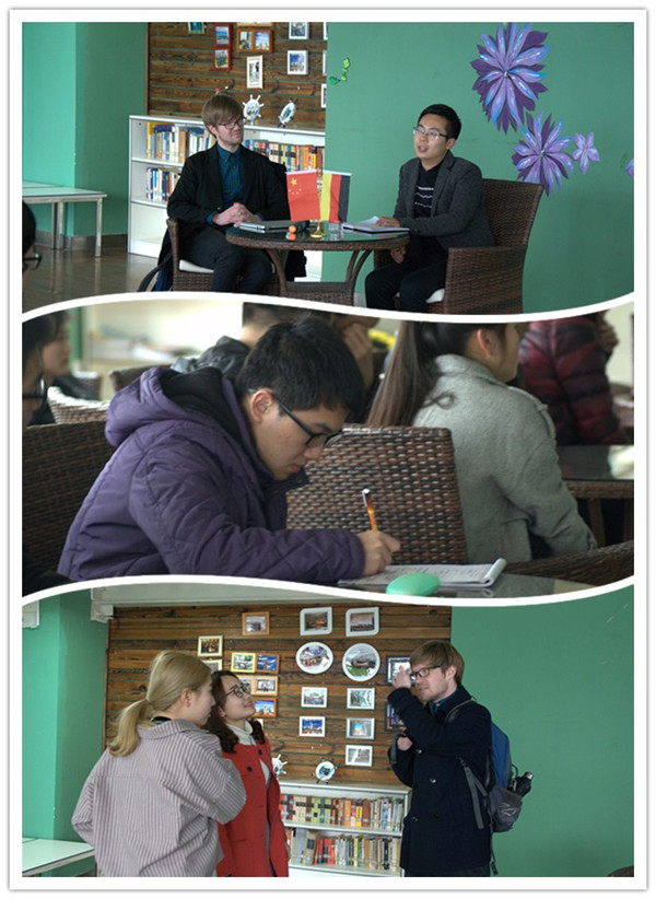 3月10日下午14:00,中德应用技术学院 “相约德国”主题沙龙分享会在中德书屋如约举行,与前两期有所不同的是,此次沙龙的嘉宾是来自德国的外教Peter及双语教研室主任刘顼。他们结合自身经历,以风趣幽默的语言,向同学们讲述了在德国以及出国前所要面临的问题与挑战。外教Peter流利的中文,刘顼老师儒雅的气质,征服了在场的每一位同学。