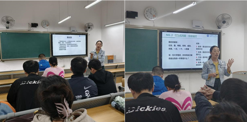 戴君老师针对面试的主要考察点、面试前、面试中、面试后的注意事项以及常见的面试题型和回答思路等方面进行讲述,并且结合自己多年的HR工作经验,重点就面试的仪容仪表要求、个人介绍、无领导小组讨论的注意事项等与大家进行交流。同时戴老师以获得OFFER的同学作为榜样,鼓励同学们“心动不如行动”,与其观望不如积极主动投简历找工作,尽快进入求职状态。戴老师强调,学生针对面试的常见问题要提前准备合适的答案并熟练演练,每一场面试都要针对目标岗位做好充分的准备。