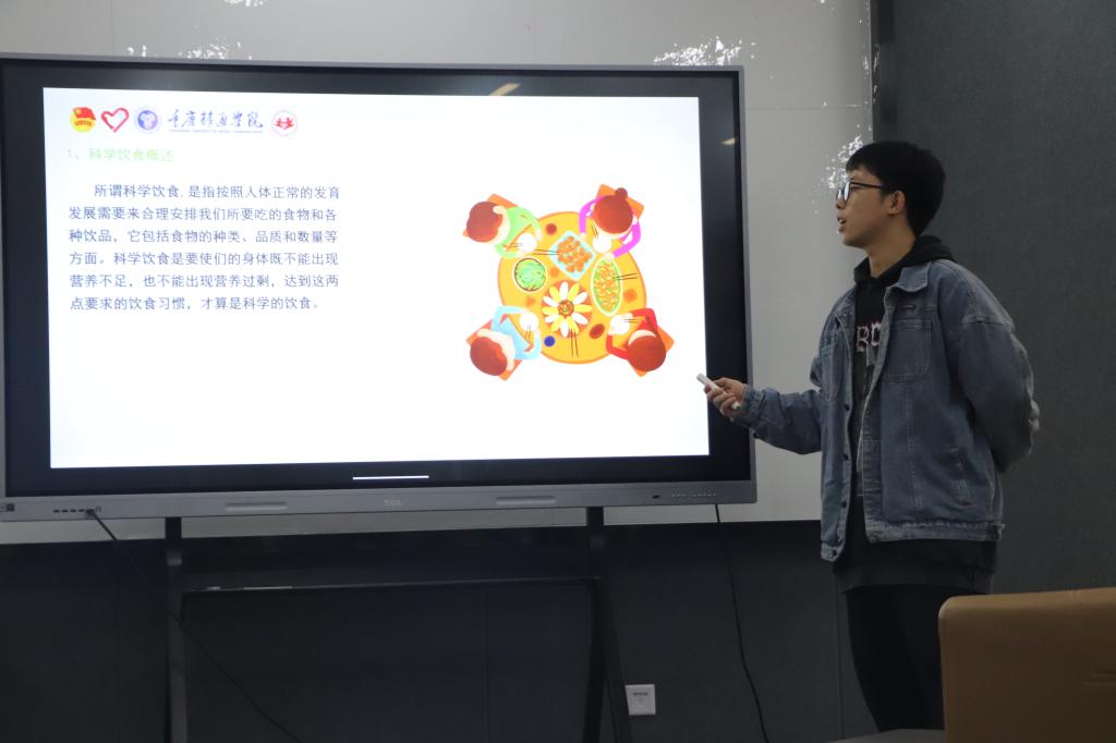 讲解期间,学长声情并茂、真情流露,真正地做到了以解说为主、ppt为辅,其对现场气氛的幽默把控、关于营养饮食方面有条理有根据的见解及与之提出的科学实施措施建议,成功引发在场人员的共鸣,室内不断响起一阵阵热烈的掌声,每个人脸上都闪过思考与认同。