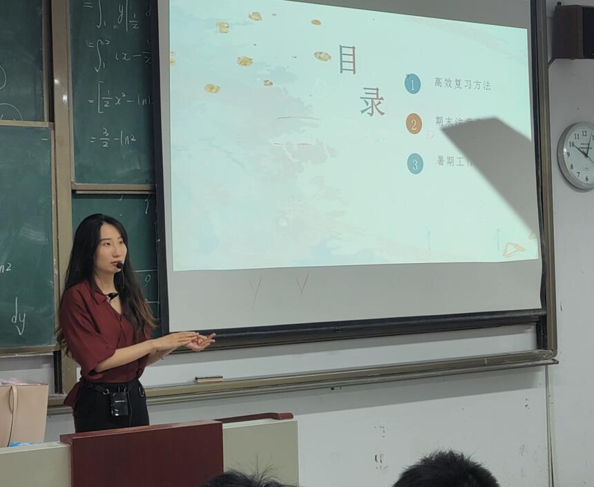 活动伊始,陈老师先对本次活动进行介绍,活动共分为3个部分,一为学习方法分享环节,二为期末考试注意事项,三为暑期工作安排。