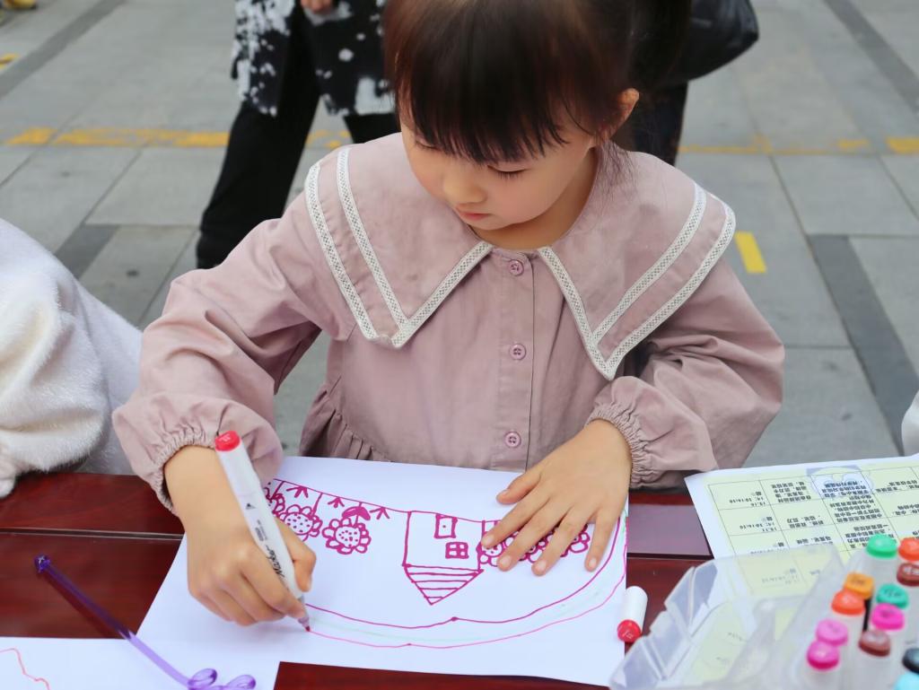 在志愿者们的大力宣传下,现场活动氛围高涨,越来越多的小朋友来到绘画桌前,他们提笔,以童真描绘心中色彩。小朋友们将进行自由式创作,展现自身绘画功底,也为后期志愿者老师因材施教提供了重要依据。一眼望去,全是小朋友们低着头认真绘画的场景。她们沉浸在想象力的王国,小白兔、小猫咪、太阳花等跃然纸上。家长和志愿者们称赞的话语,为小朋友们的绘画作品插上了翅膀,飞上了充满梦想的蓝天。