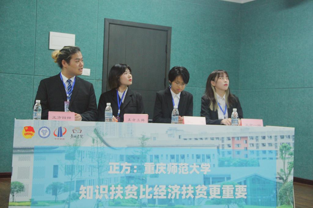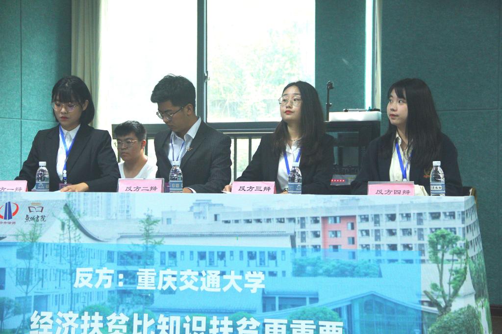 在本次“自强杯”辩论邀请赛中,共有十所高校代表队报名参赛,来自重庆交通大学、重庆理工大学、西南政法大学、重庆师范大学、重庆人文科技学院、重庆对外经贸学院、重庆工商大学派斯学院、重庆工商职业学院、重庆应用职业学院以及重庆移通学院的优秀辩手们同场竞技。经过初赛、复赛、半决赛的激烈角逐、层层突围,重庆师范大学代表队和重庆交通大学代表队脱颖而出,站上决赛的舞台。6月21日中午,决赛在在爱莲书院拉开帷幕,辩题为:知识扶贫比经济扶贫更重要还是经济扶贫比知识扶贫更重要。