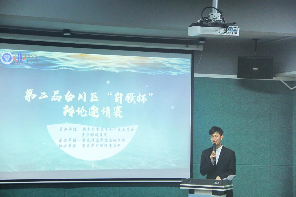 比赛由一场关于“大学生兼职利大于弊还是弊大于利”的趣味辩论赛拉开了序幕,现场辩手们急智思辨、妙语连珠,掀起了现场第一个高潮,全场气氛热烈、掌声不断。共青团重庆市合川区委员会副书记汤红光书记也就辩题提出了自己的看法,激发了在座师生们更加积极地参与到辩论中,为决赛的开启营造了良好的现场氛围。