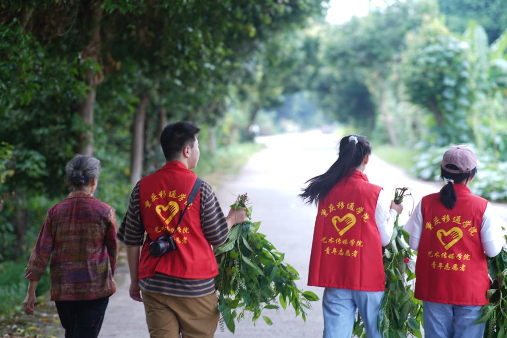 志愿者们走进韩昌玉、杨中云的家中,帮忙割猪草喂猪崽。与两位老人交谈途中,观察成员也得知了村里的基本情况,这为日后的走访调研打下了坚实的基础。